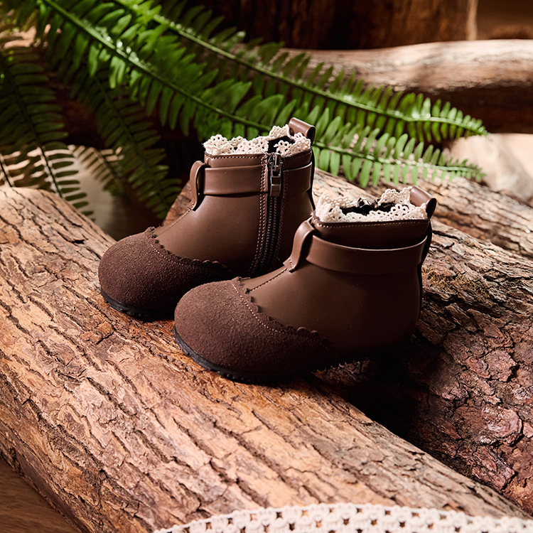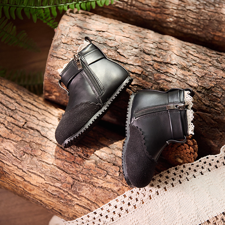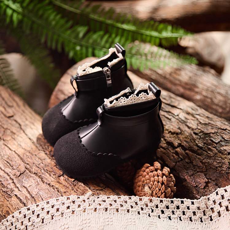 소녀와 소년을위한 짧은 부츠 복고풍 패션 2024 가을, 겨울 아기 소녀 레이스 엣지 공주 부츠 부드러운 밑창 마틴 부츠스토어 가기