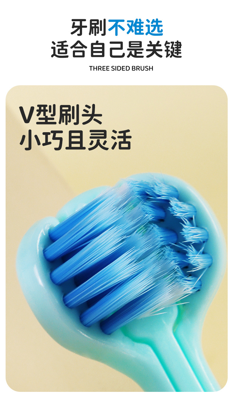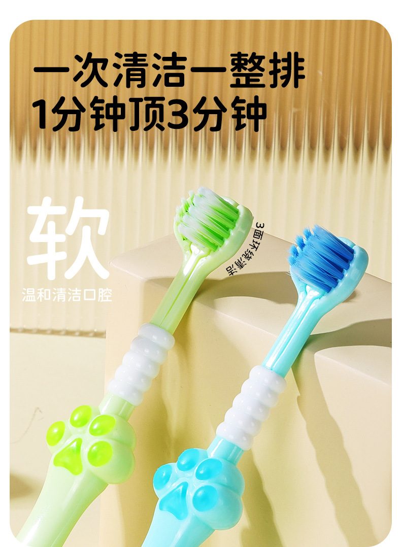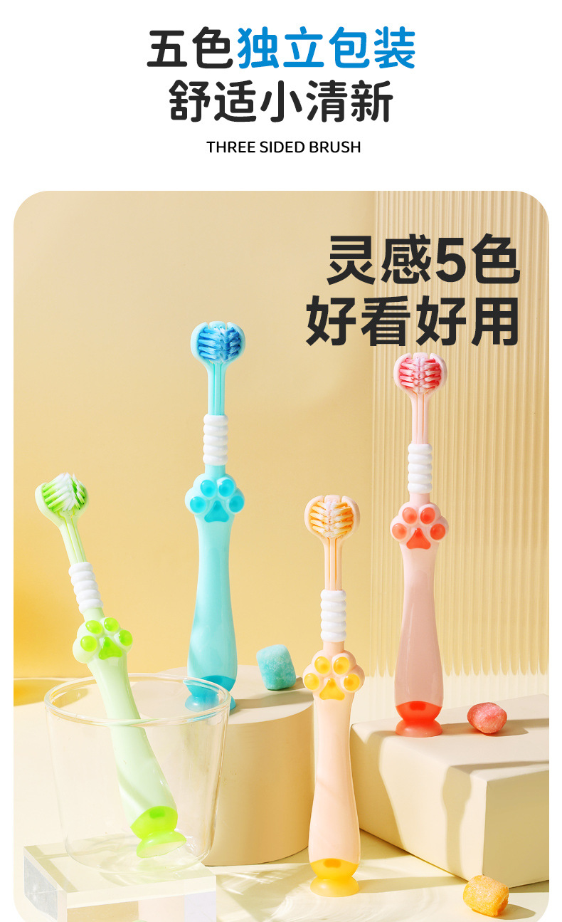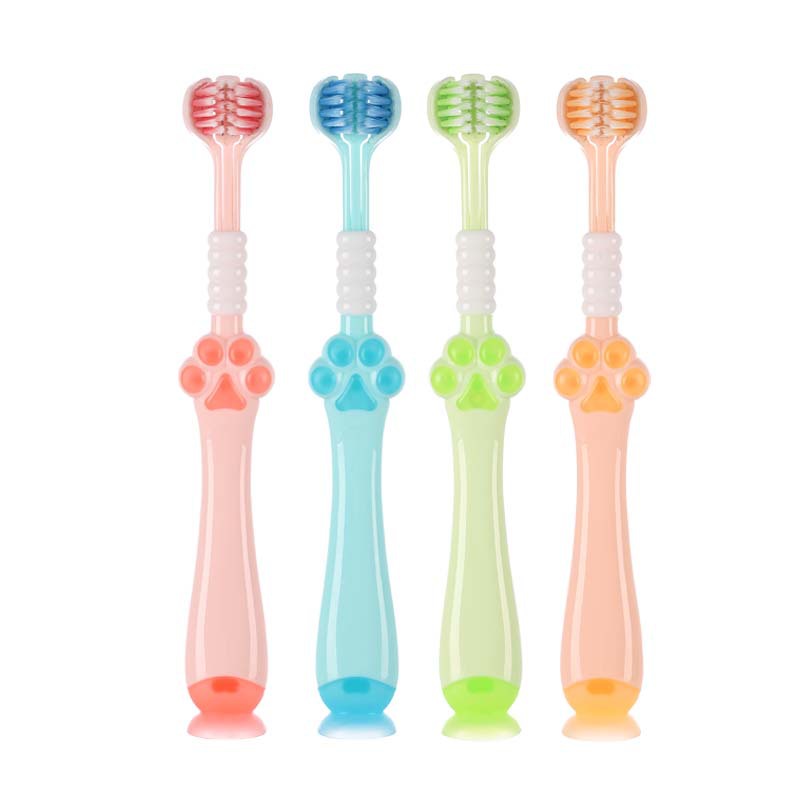 어린이 3 면 부드러운 강모 칫솔 신선한 색 부드러운 강모 깊은 청소 머리 발톱 미끄럼 방지 어린이 칫솔 도매