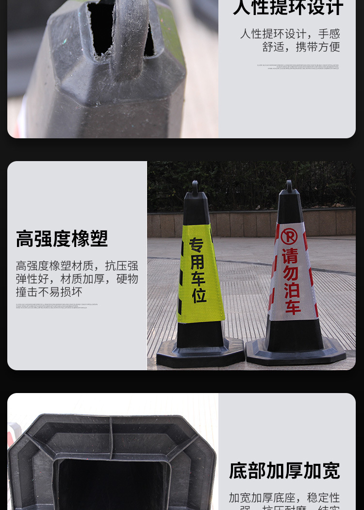 고무 도로 콘 삼각형 반사 사각형 콘 캡 주차 파일 경고 표시 아이스크림 배럴 바리케이드 콘 그라운드 콘