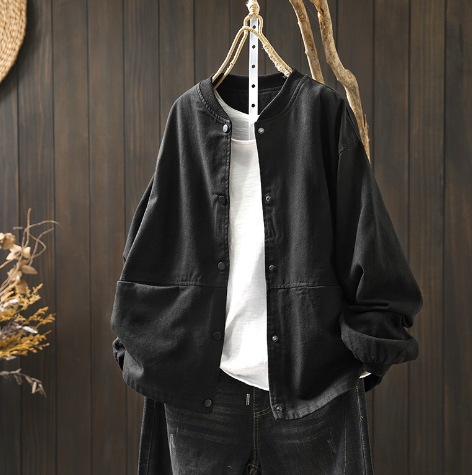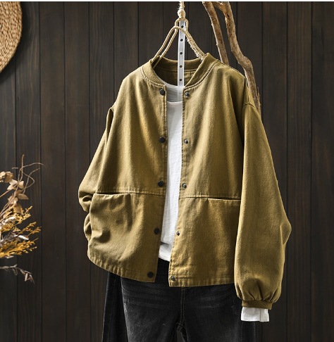 가을 새로운 면 야구 칼라 짧은 코트 여자 느슨한 슬림 캐주얼 더블 포켓 재킷 카디건 탑 50003