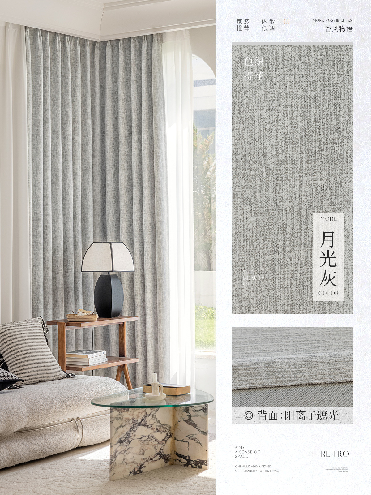 Xiangfeng Tale 미니멀리스트 및 앤티크 라이트 럭셔리 거실 높은 음영 커튼 Chenille 원사 염색 자카드 고급 침실