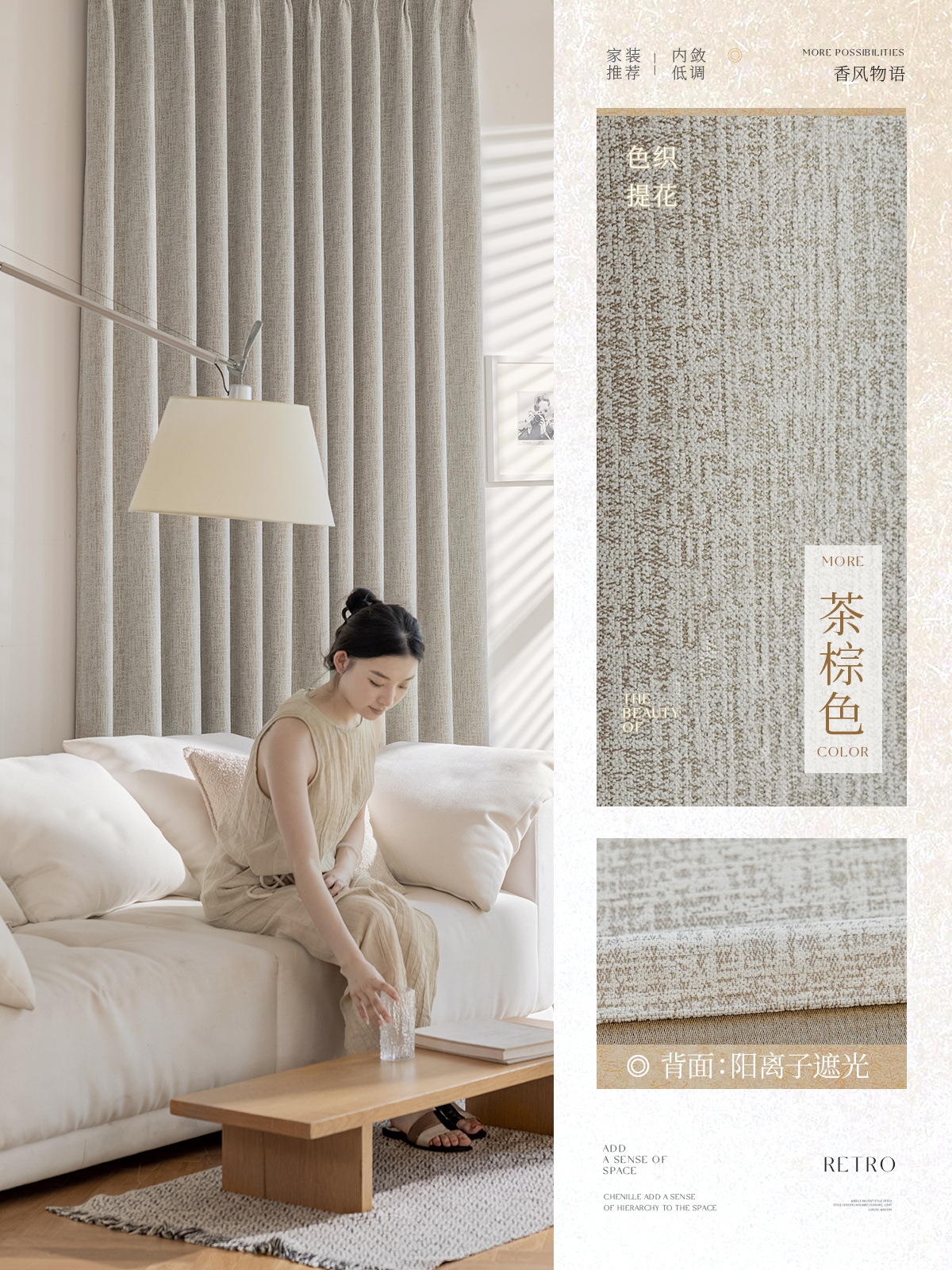 Xiangfeng Tale 미니멀리스트 및 앤티크 라이트 럭셔리 거실 높은 음영 커튼 Chenille 원사 염색 자카드 고급 침실스토어 가기