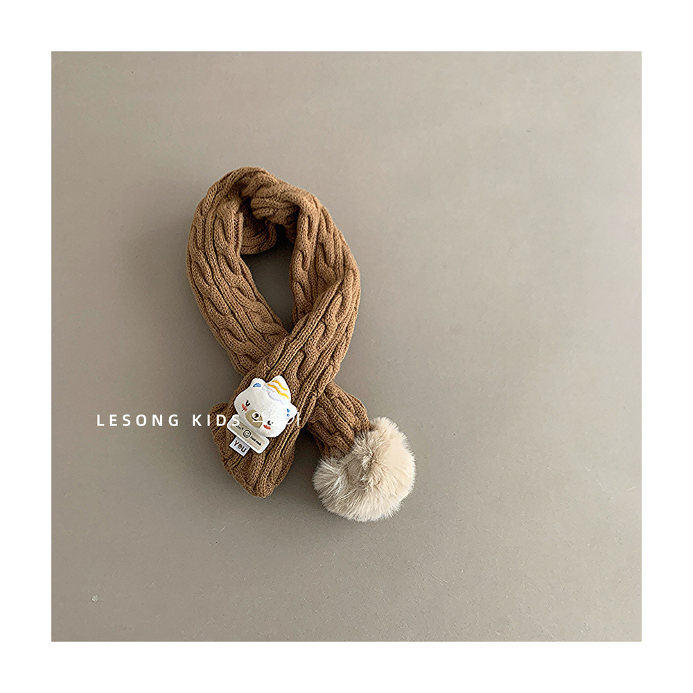 한국 스타일 어린이 스카프 Ins 작은 토끼 귀여운 모피 공 아기의 크로스 스카프 남학생과 여자를위한 따뜻한 니트 넥셋스토어 가기