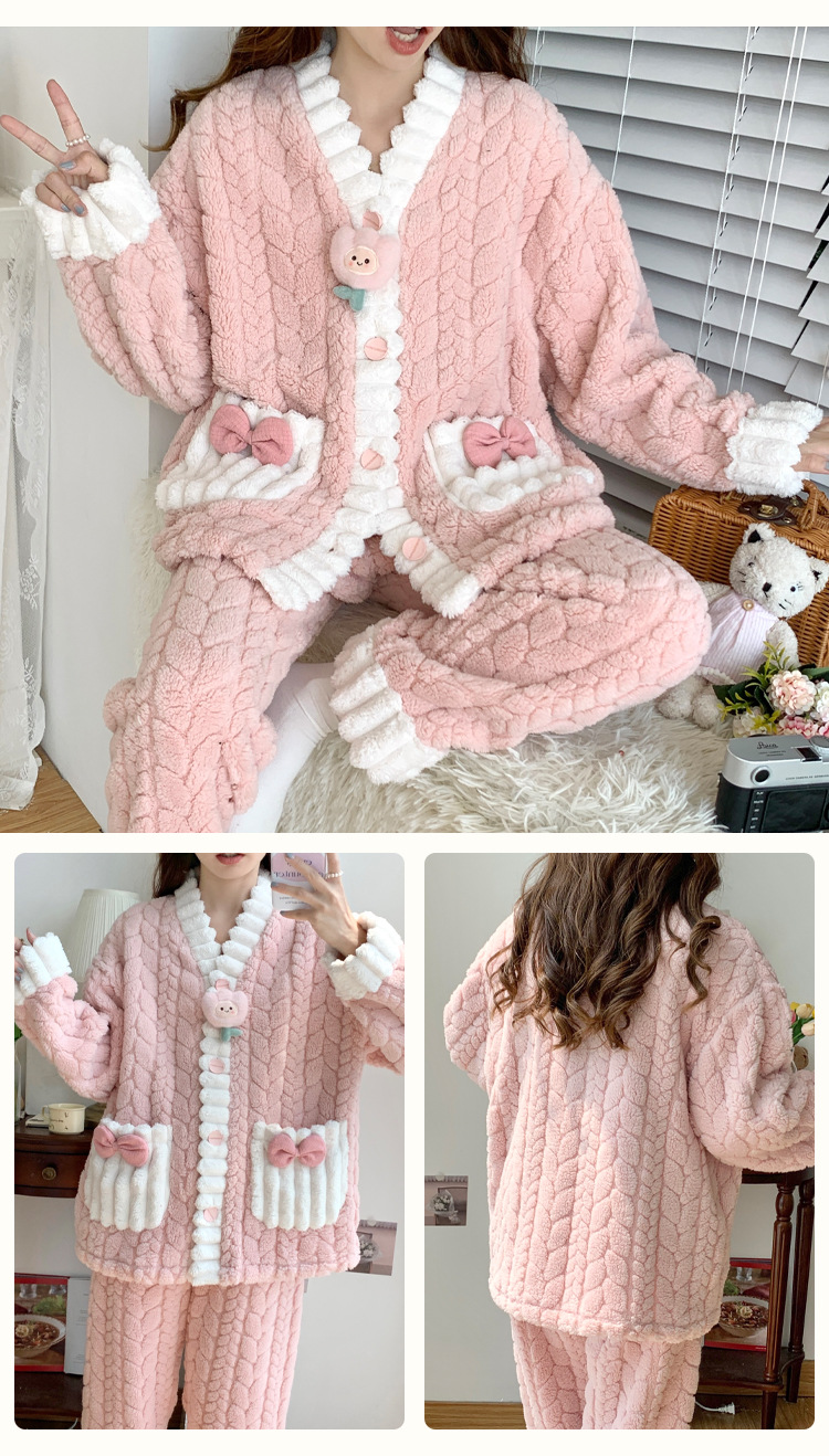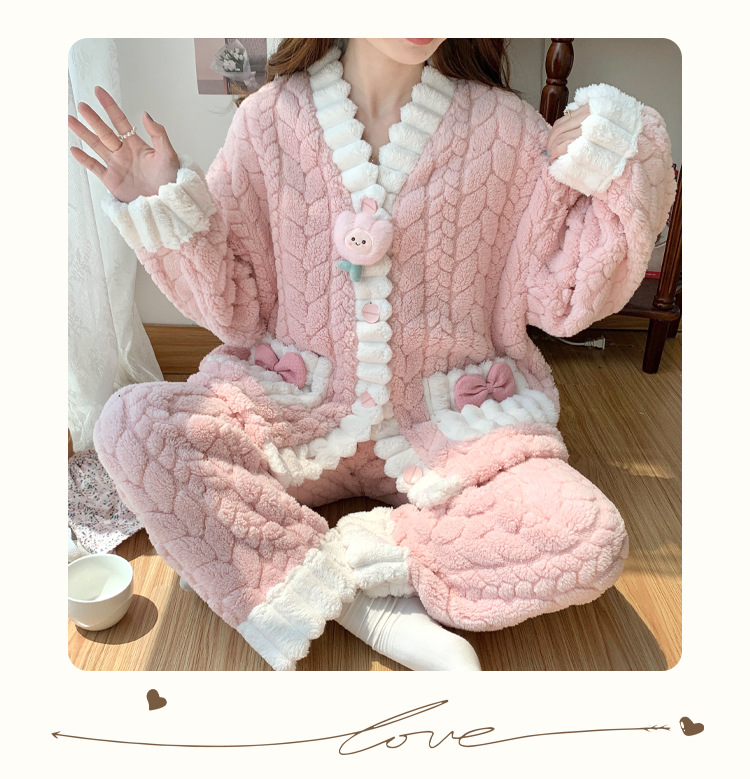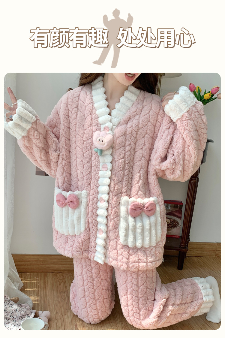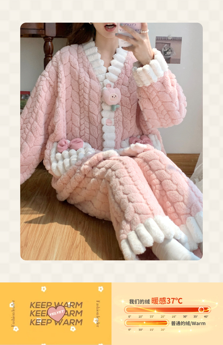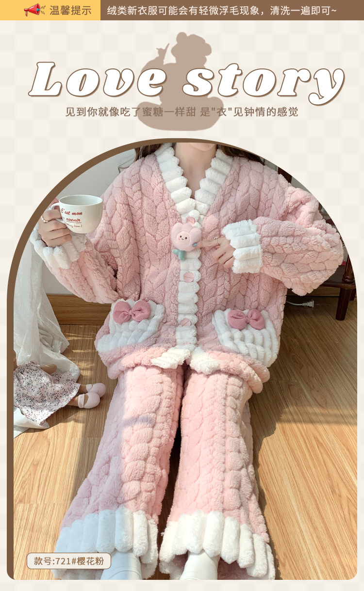 국경 간 산호 양털 파자마 여성의 가을과 겨울 새로운 기모 두꺼운 따뜻한 달콤한 플란넬 홈 의류 소스 공장스토어 가기