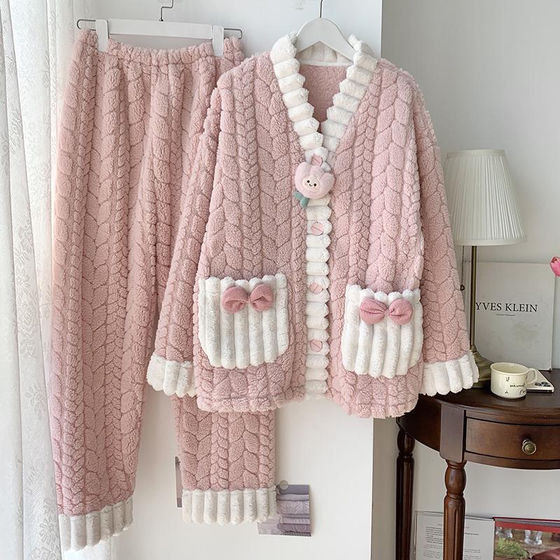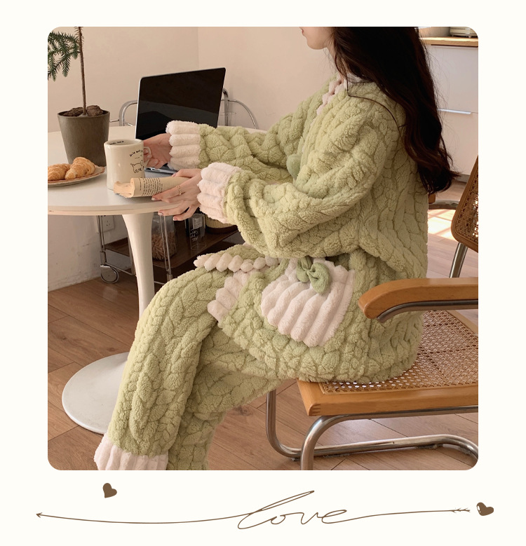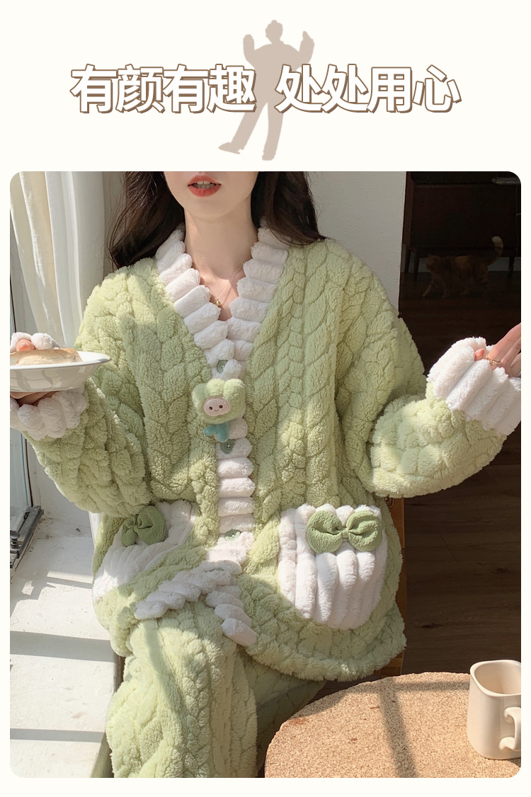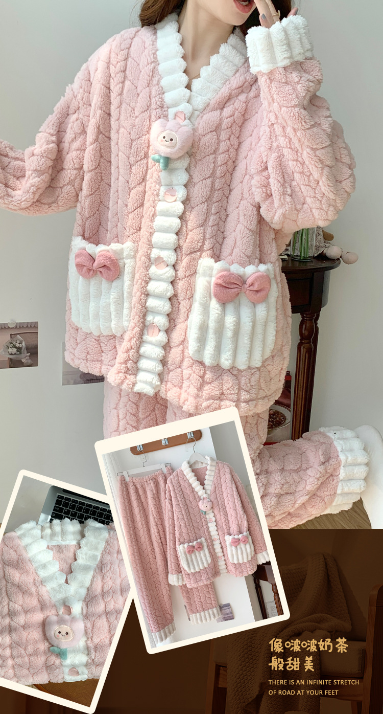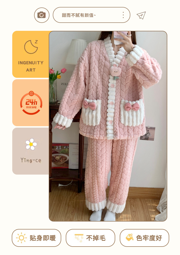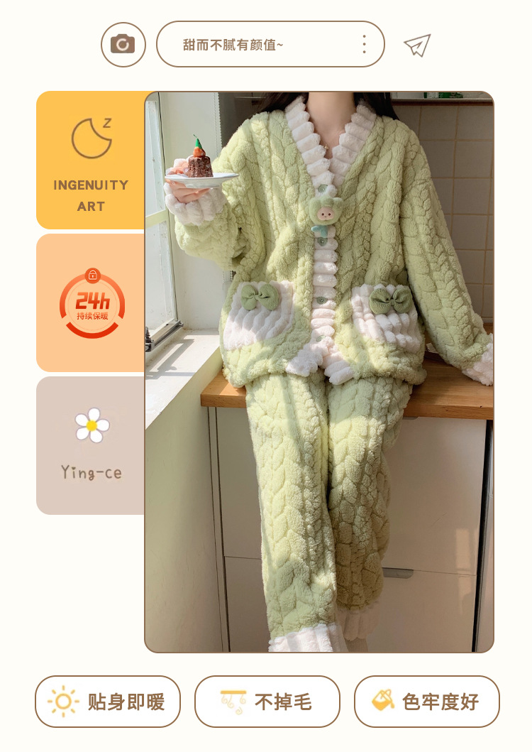 국경 간 산호 양털 파자마 여성의 가을과 겨울 새로운 기모 두꺼운 따뜻한 달콤한 플란넬 홈 의류 소스 공장스토어 가기