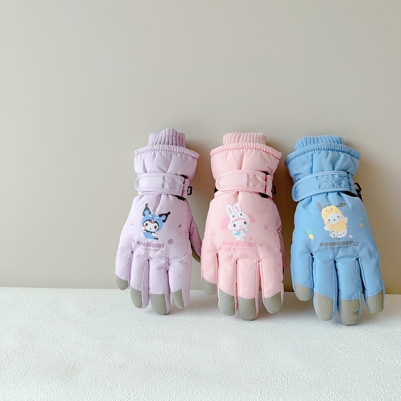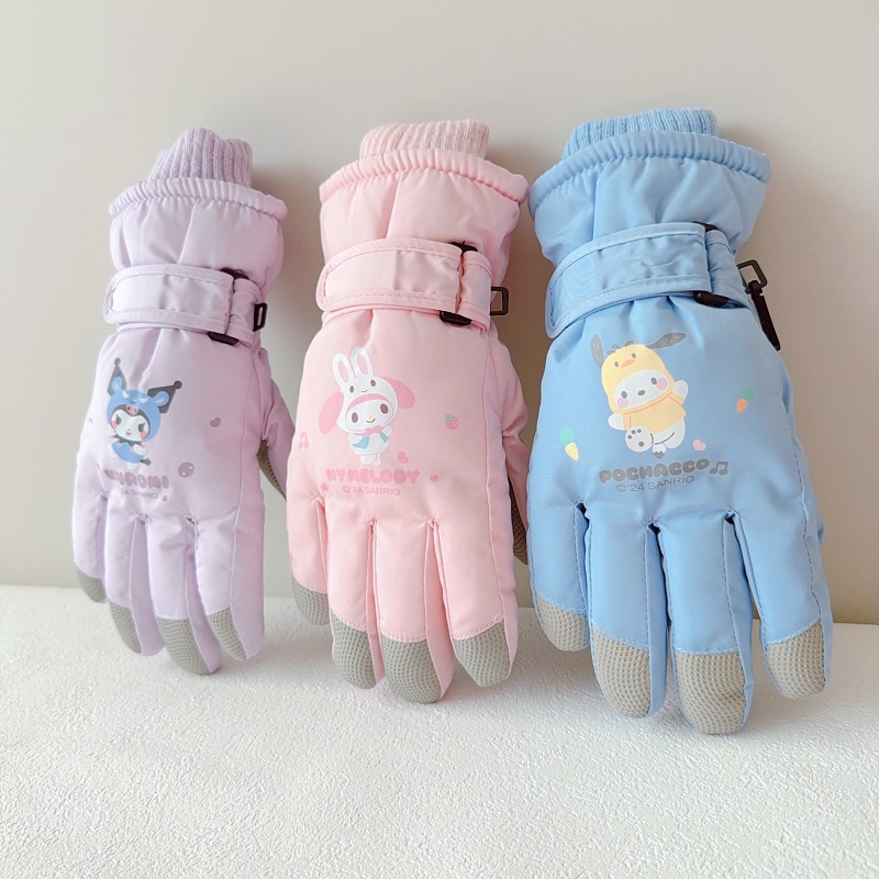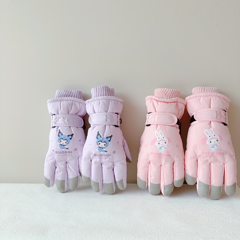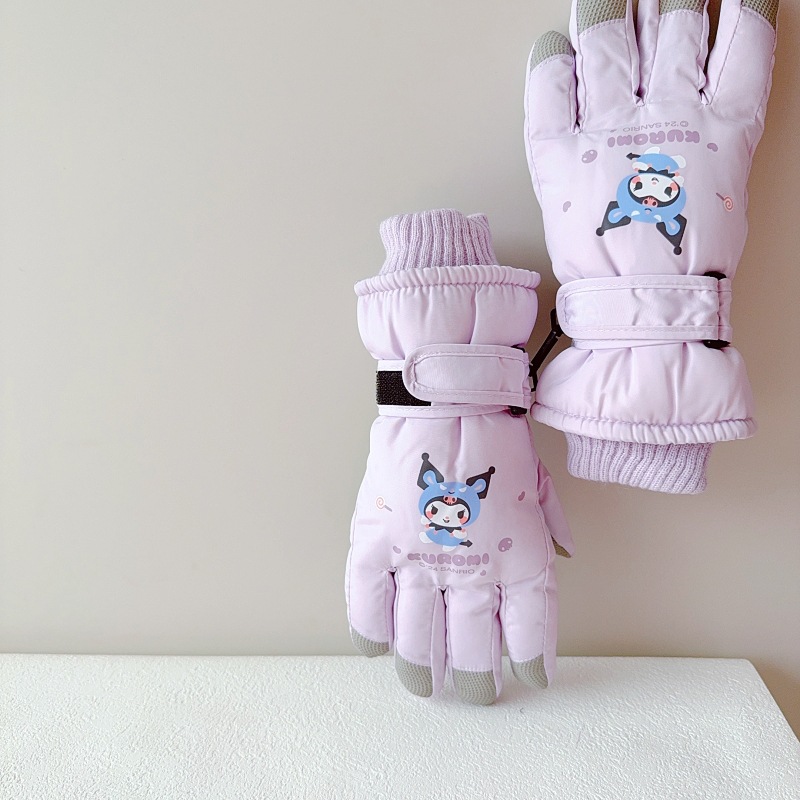 산리오 쿨로미 메로티 3-10 세 어린이 스키 장갑 겨울 어린이 소년 소녀 손가락 방수
