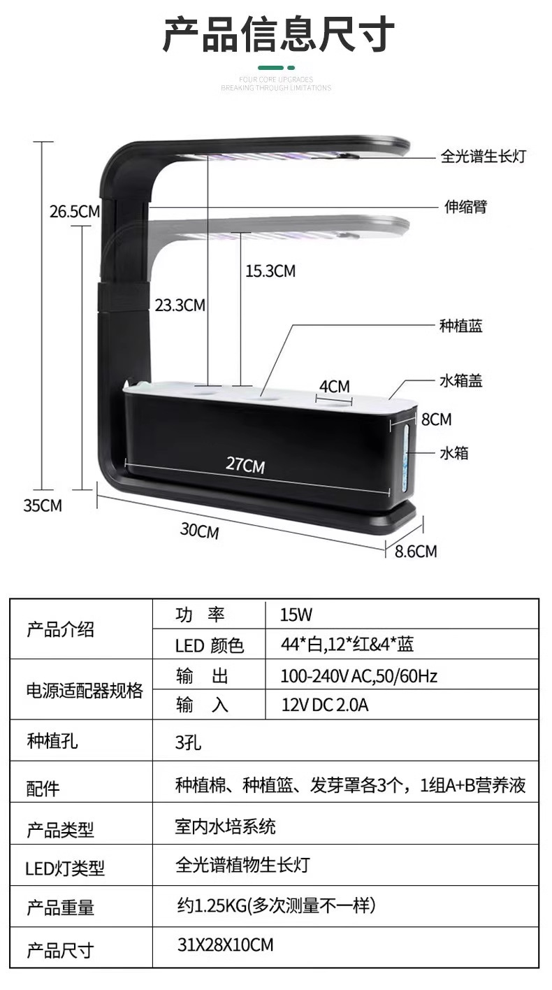 실내 수경 지능형 led 심기 기계 야채 다육 꽃 냄비 토양 재배 장비 식물 성장 채우기 빛