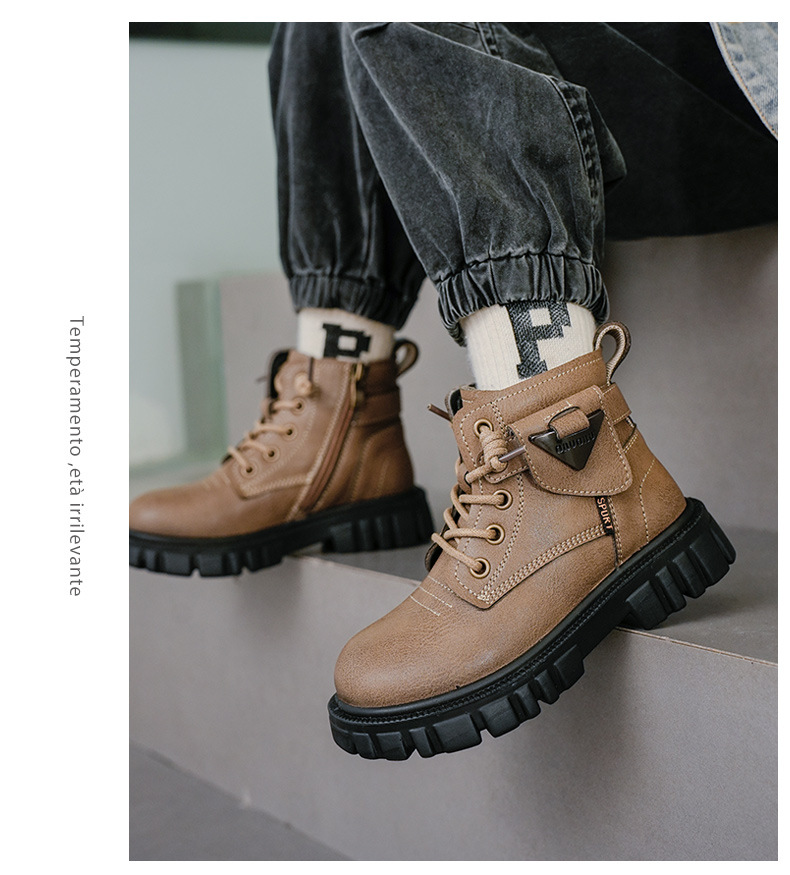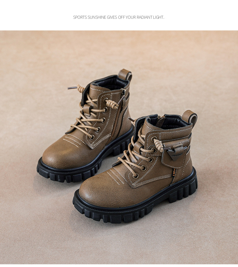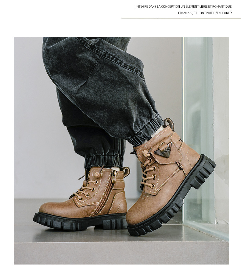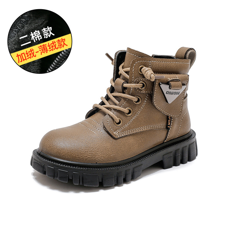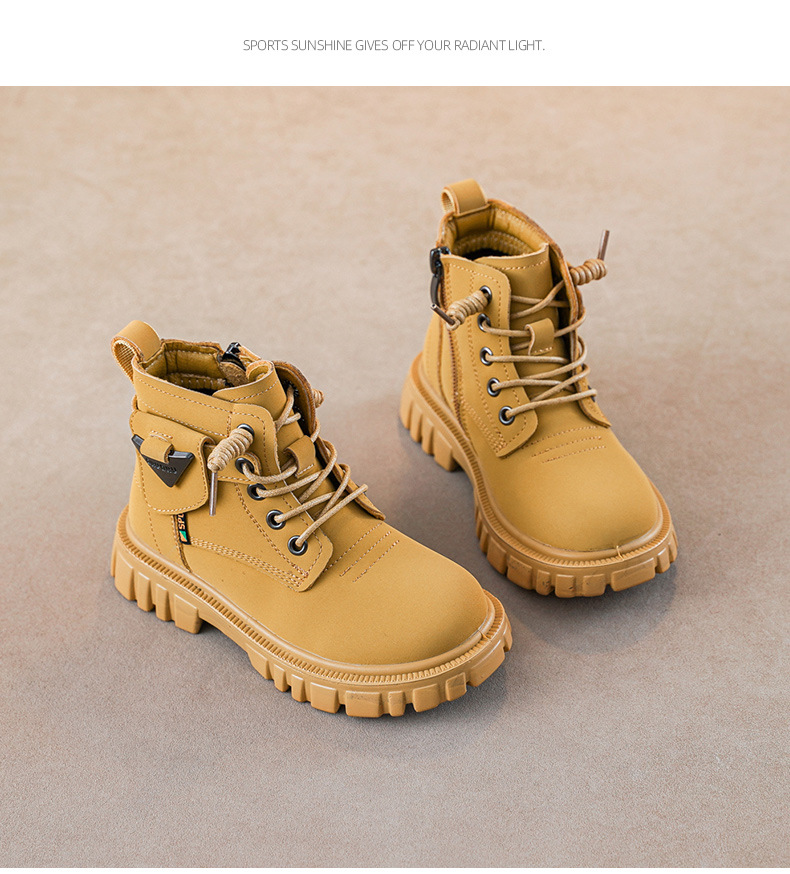 남아용 노란색 부츠 2025 가을 겨울 신상품 어린 소년용 마틴 부츠 패션 다용도 플러스 벨벳 어린이용 짧은 부츠