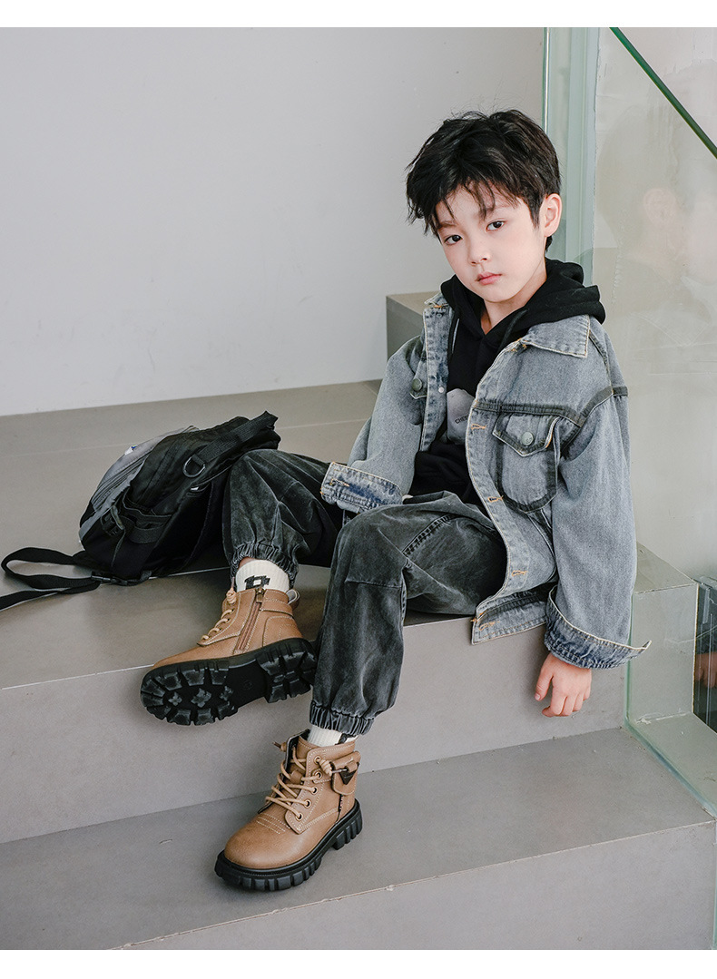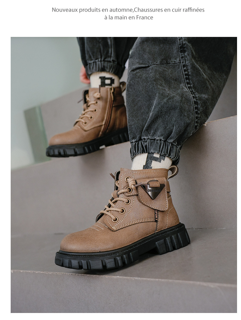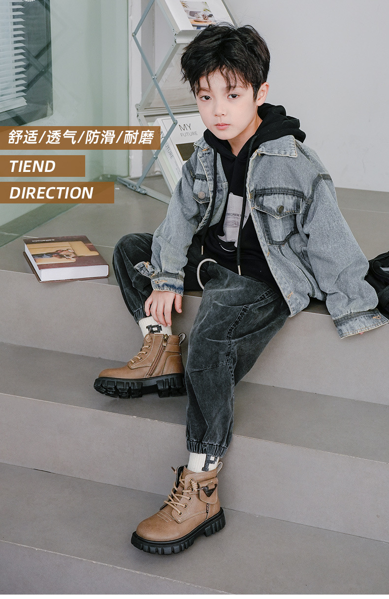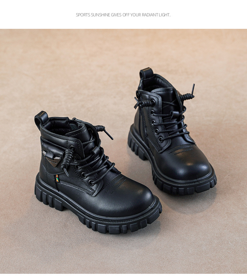 남아용 노란색 부츠 2025 가을 겨울 신상품 어린 소년용 마틴 부츠 패션 다용도 플러스 벨벳 어린이용 짧은 부츠