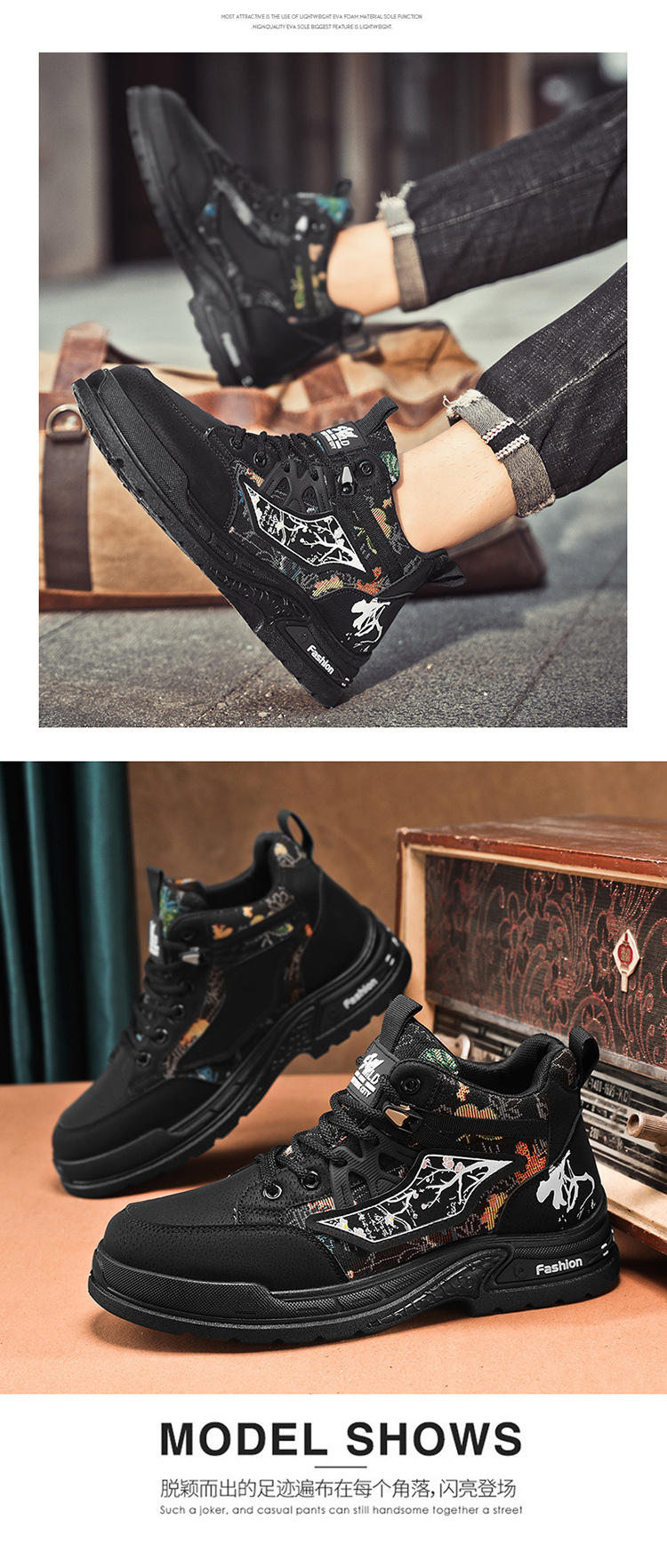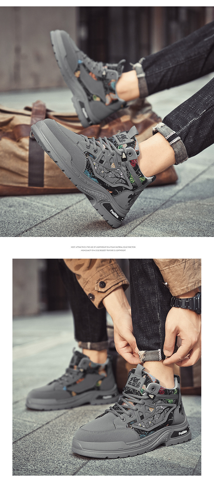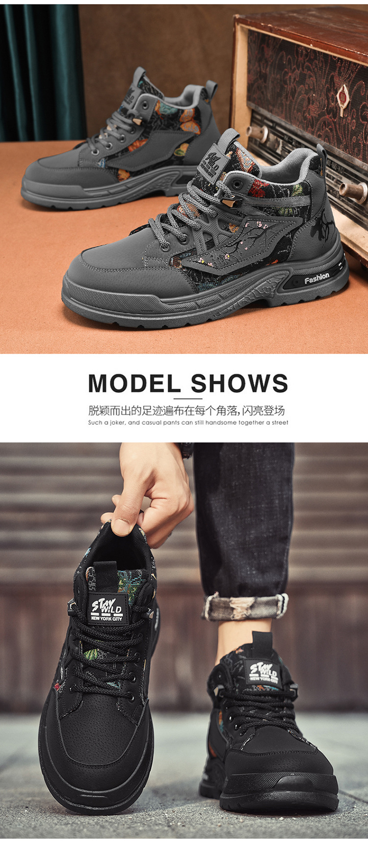 남성 신발 하이 탑 레트로 캐주얼 야외 등산 2024 가을 새로운 영국 스타일 노동 보호 내마모성 마틴 부츠스토어 가기