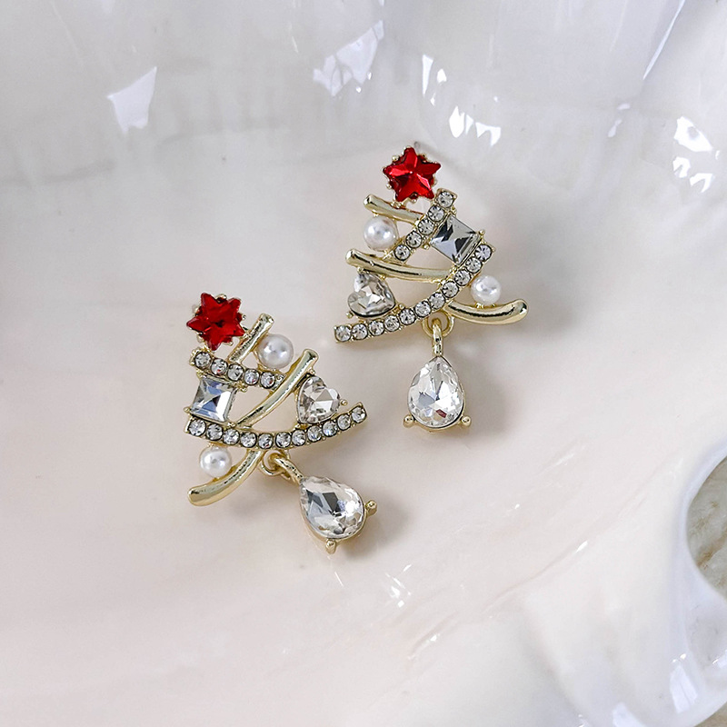 귀여운 진주 모조 다이아몬드 크리스마스 트리 귀걸이 틈새 독특한 귀걸이 새로운 2024 폭발 고감 귀걸이 귀걸이스토어 가기