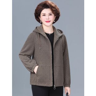 작은 어머니 가을 코트 서양식 캐주얼 후드 탑 중년 여성의 봄과 가을 짧은 재킷