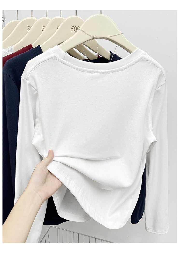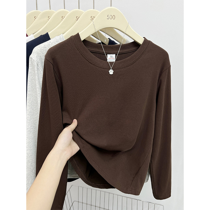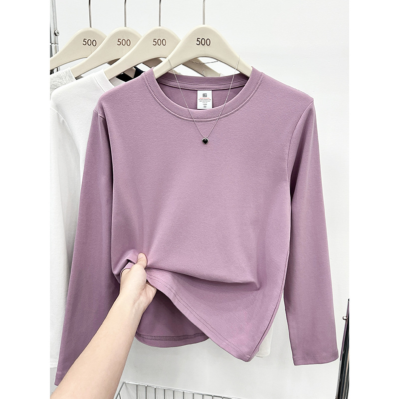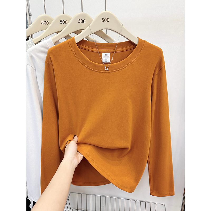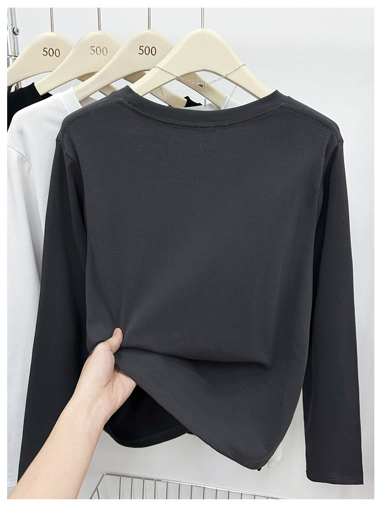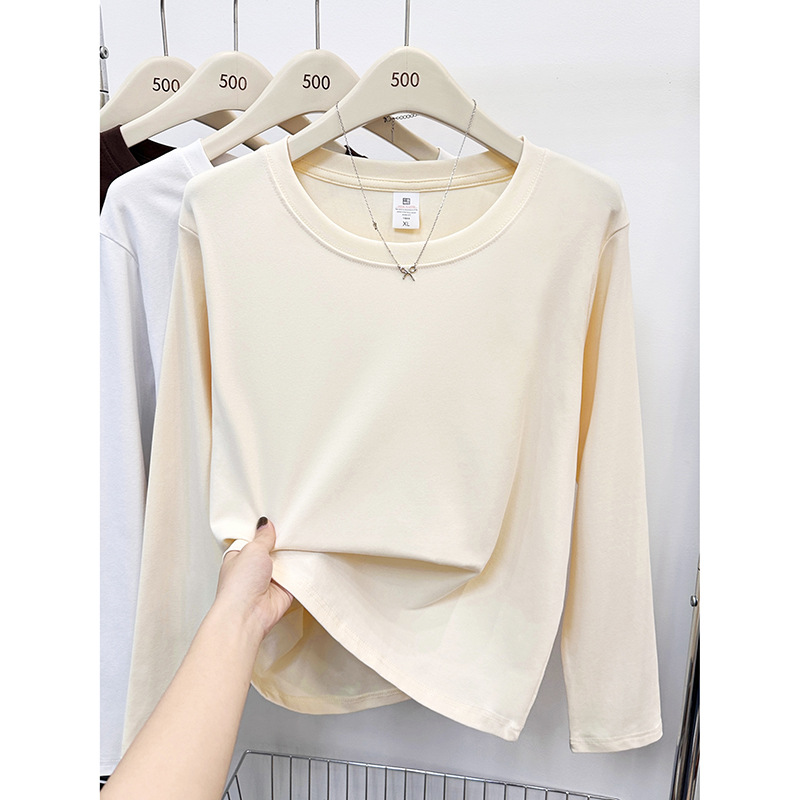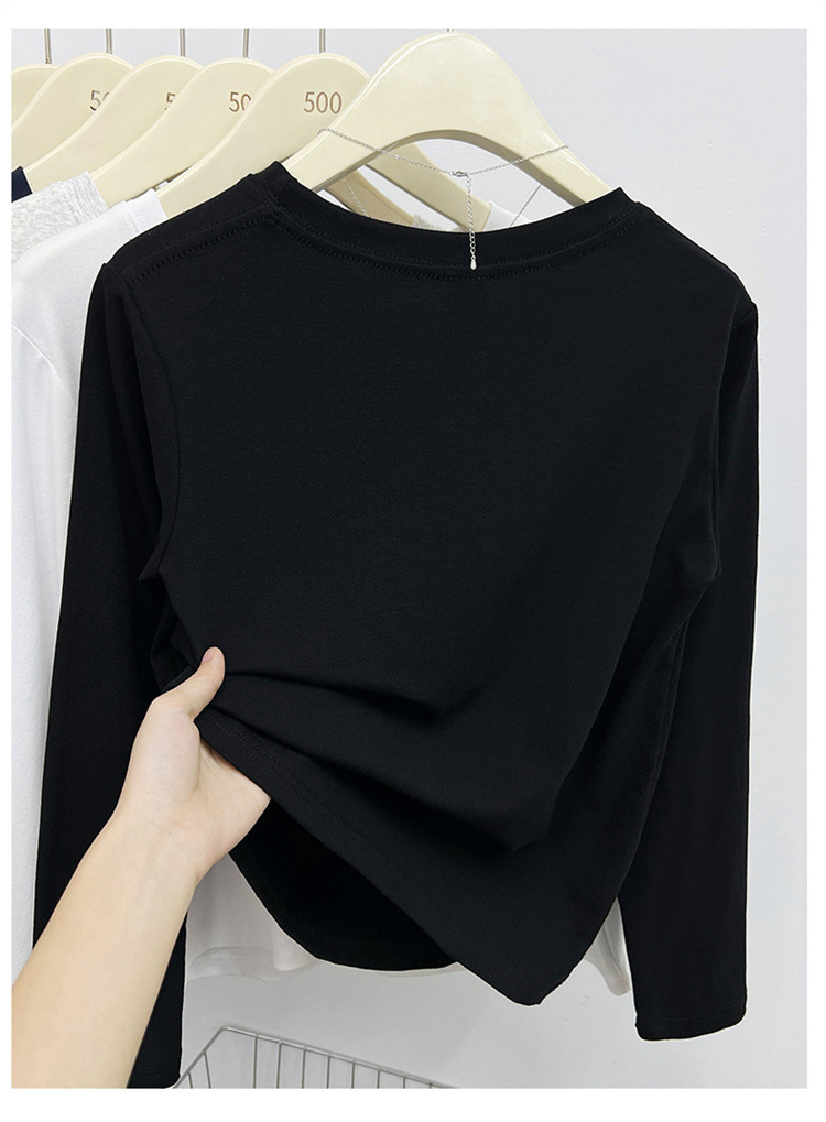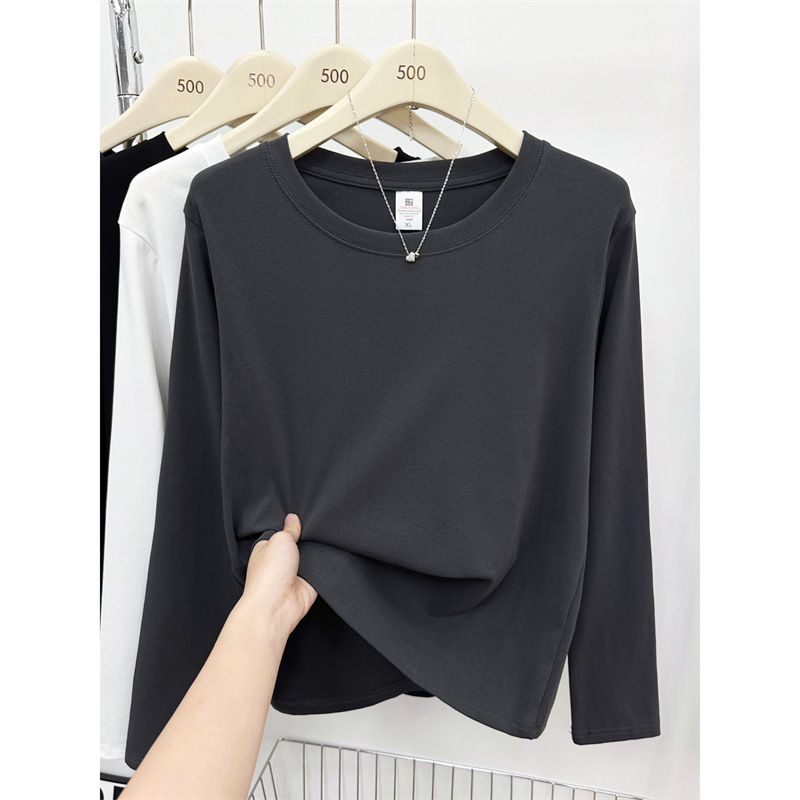 여성용 오른쪽 어깨 긴팔 티셔츠 가을 겨울 신작 여성 의류 2024 신작 라운드 넥 슬림 솔리드 컬러 바닥 탑 트렌디스토어 가기
