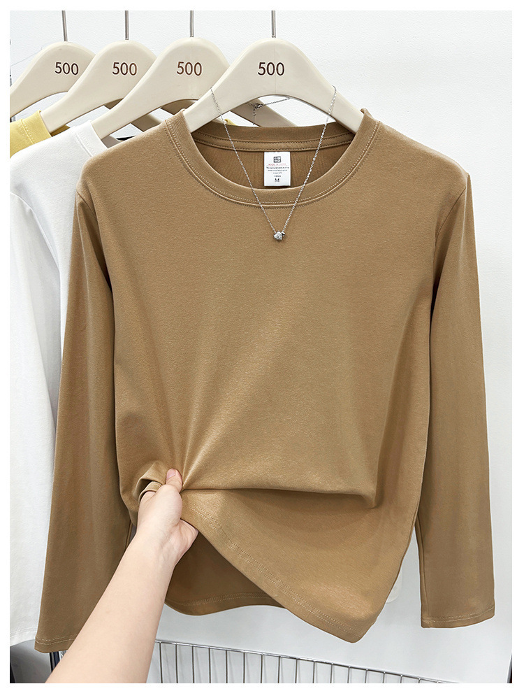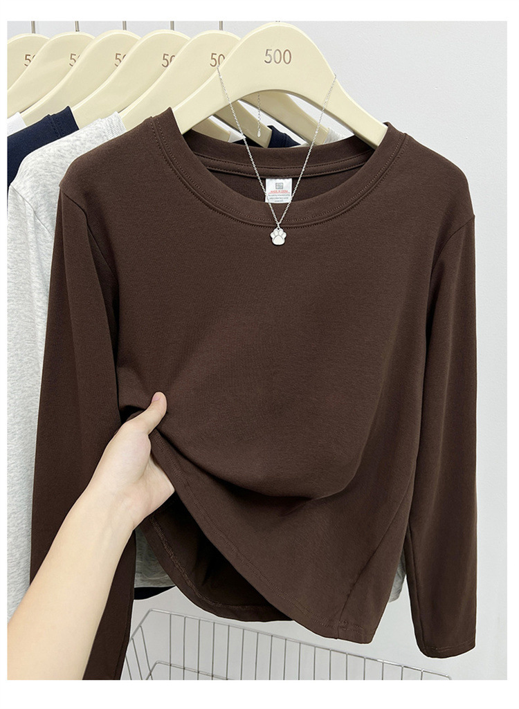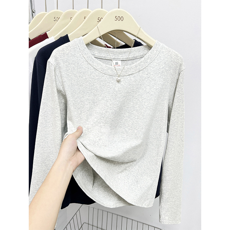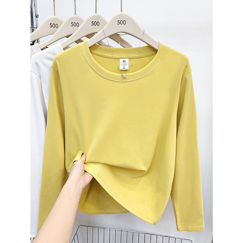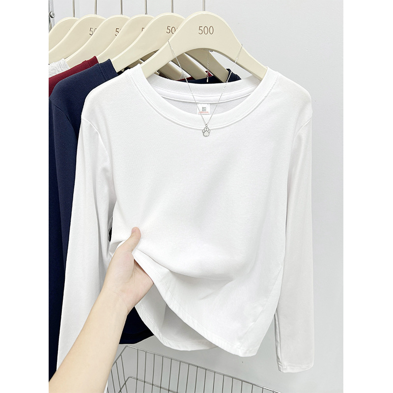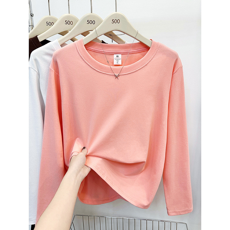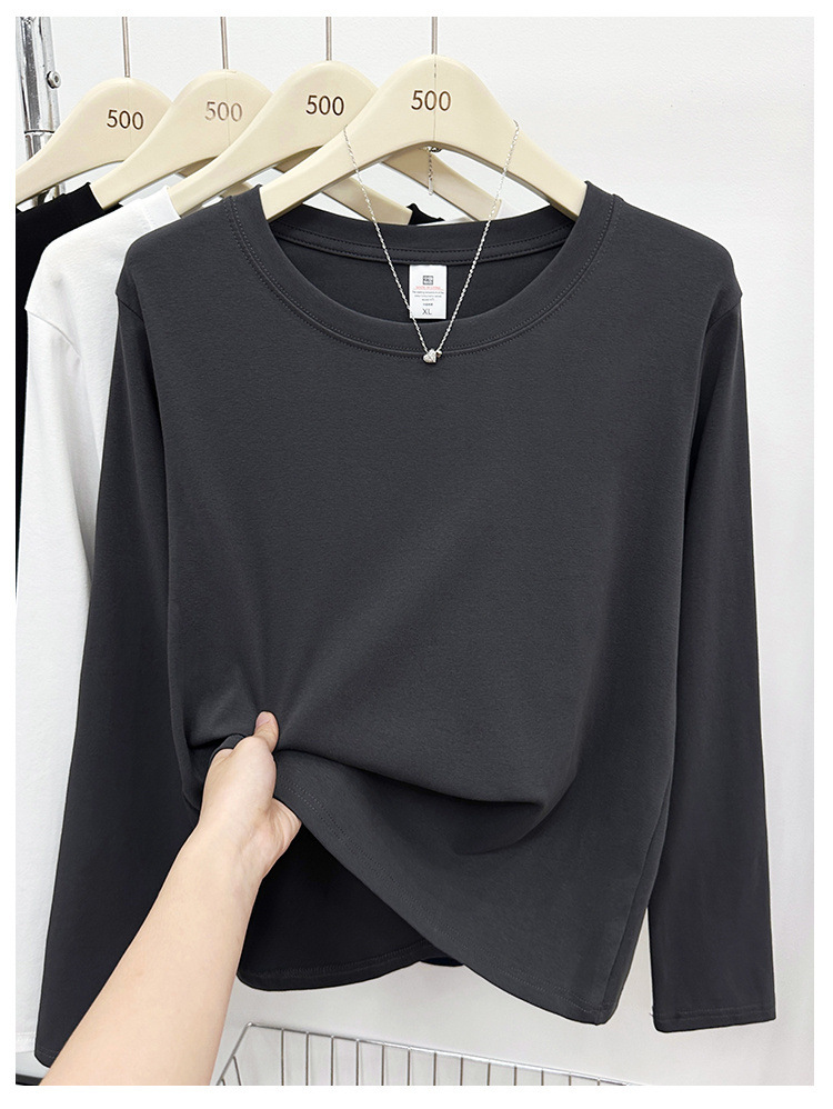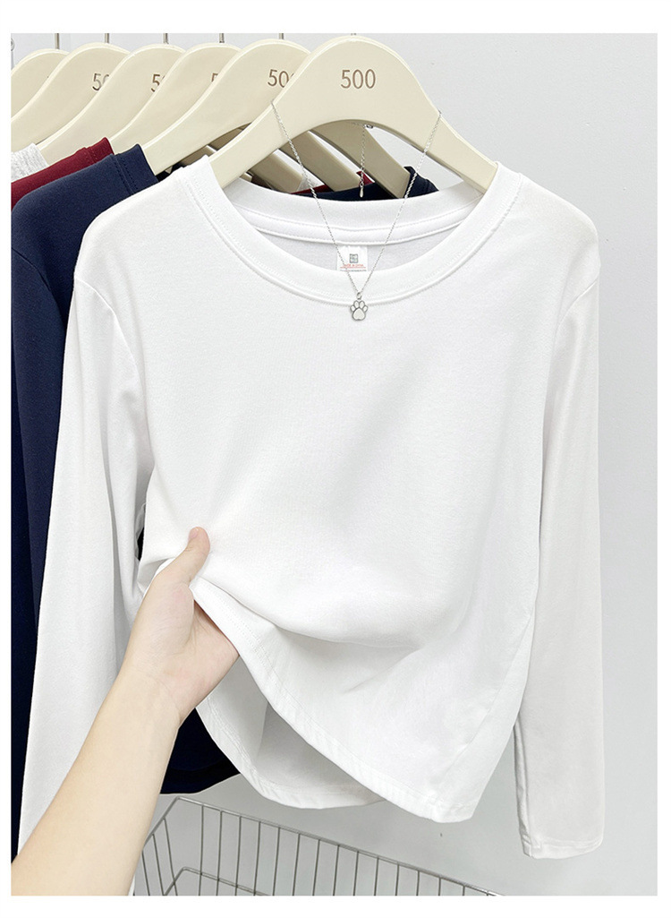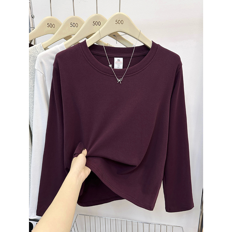 여성용 오른쪽 어깨 긴팔 티셔츠 가을 겨울 신작 여성 의류 2024 신작 라운드 넥 슬림 솔리드 컬러 바닥 탑 트렌디스토어 가기