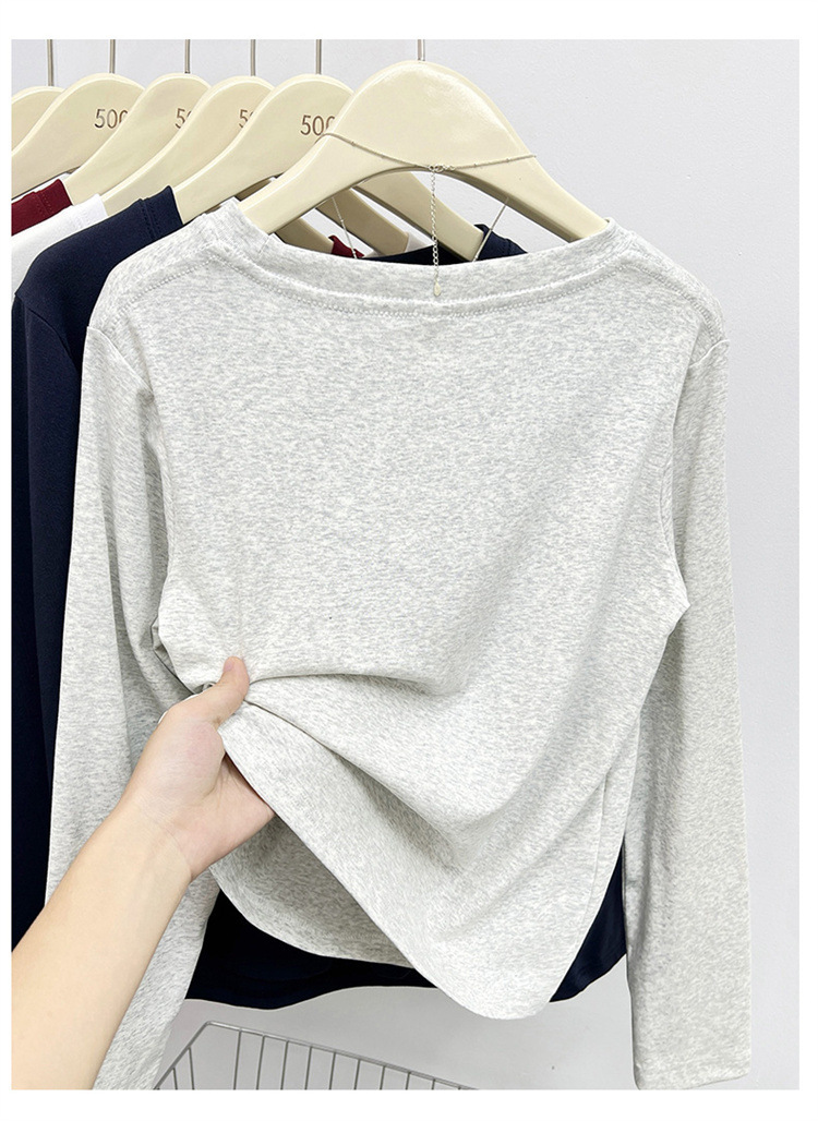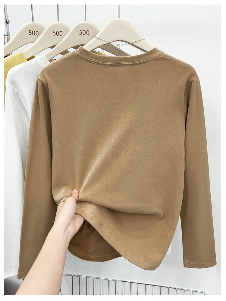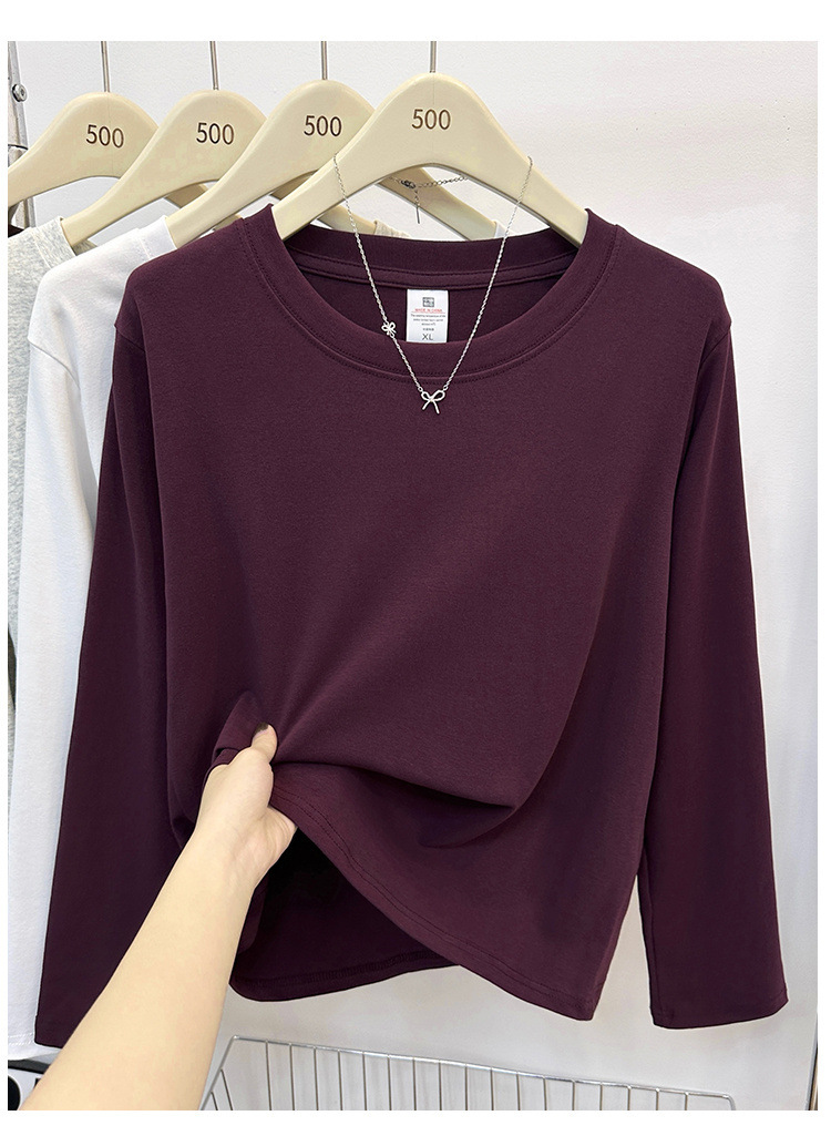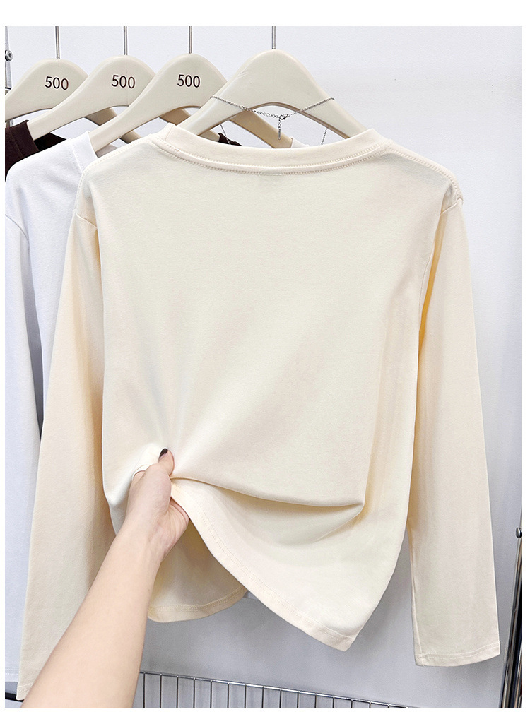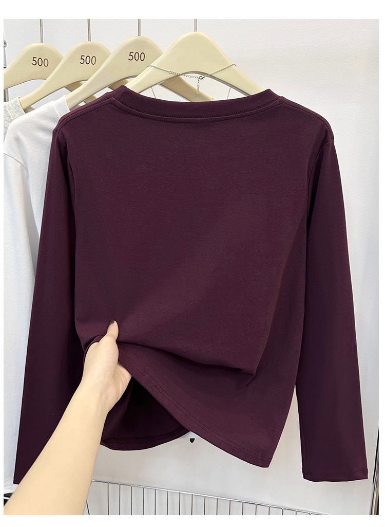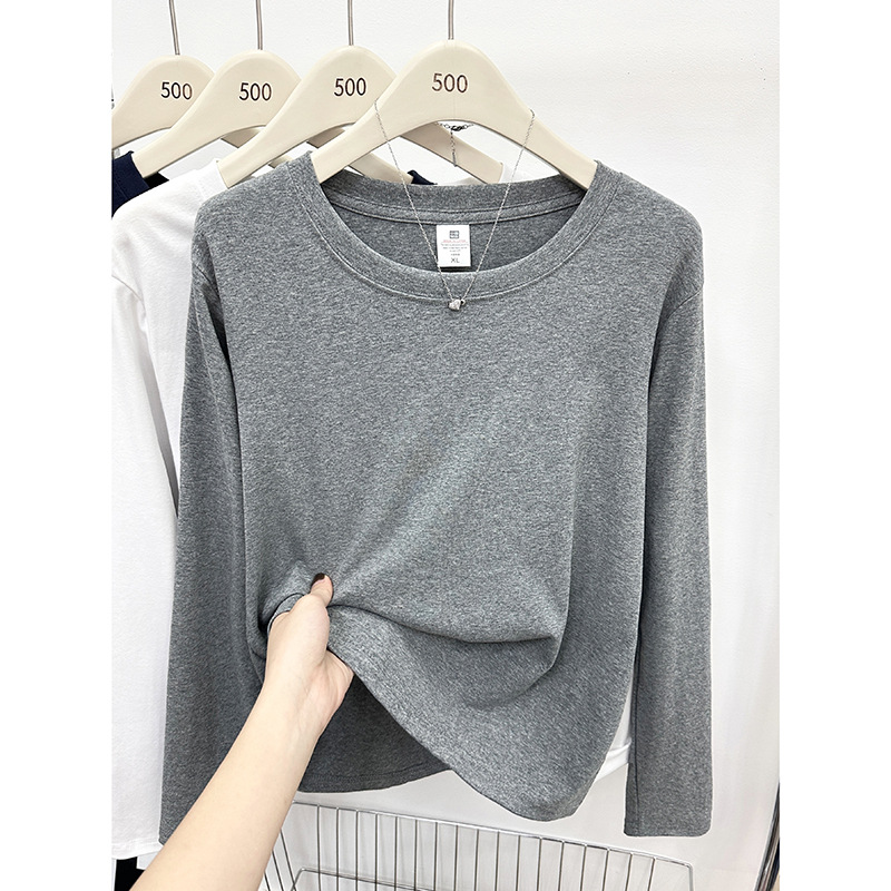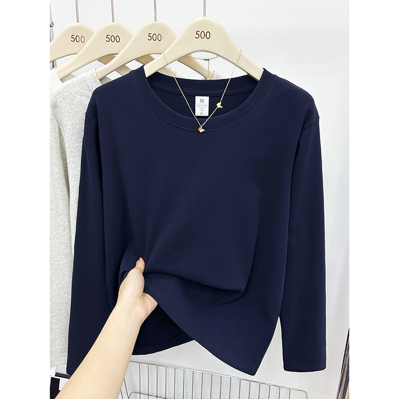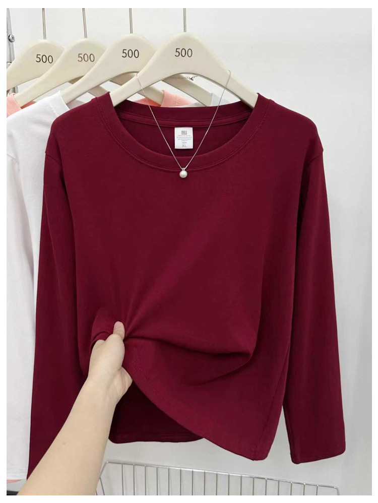 여성용 오른쪽 어깨 긴팔 티셔츠 가을 겨울 신작 여성 의류 2024 신작 라운드 넥 슬림 솔리드 컬러 바닥 탑 트렌디스토어 가기