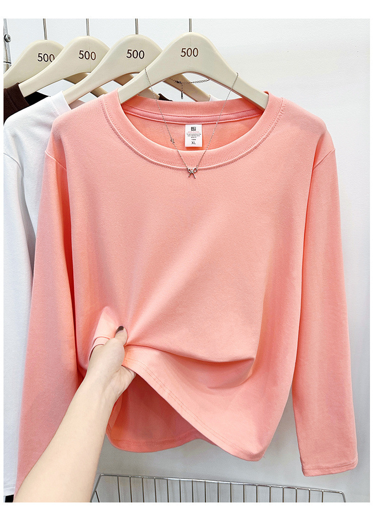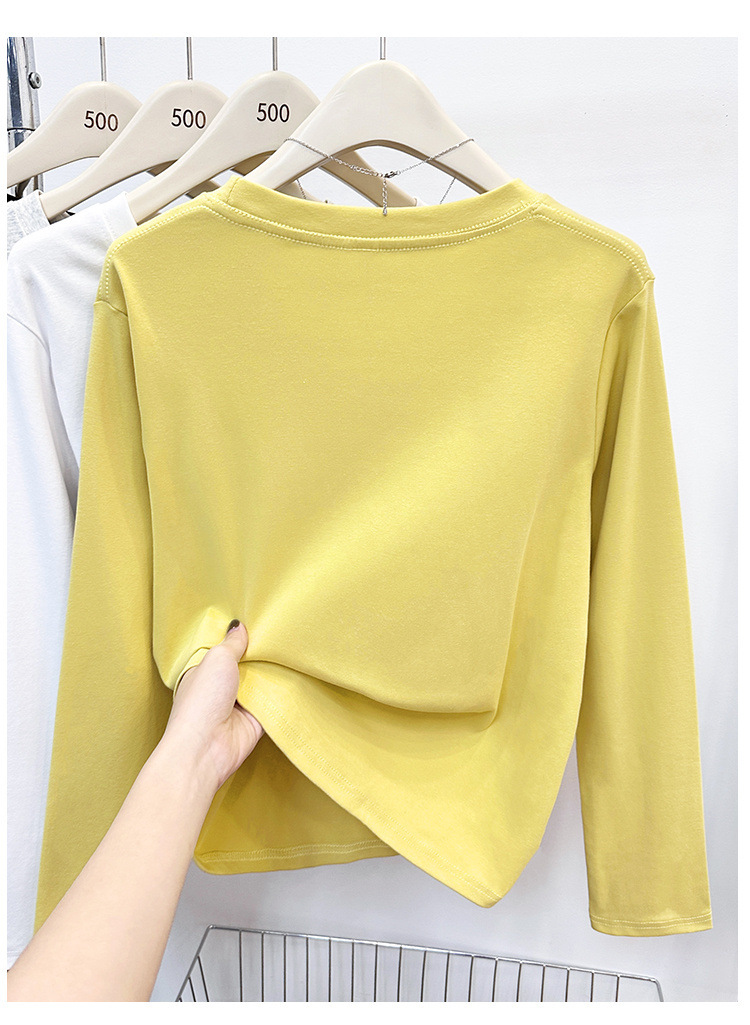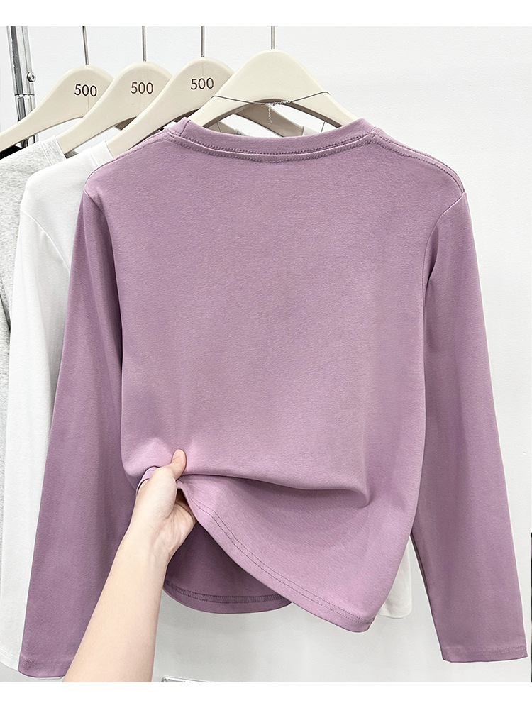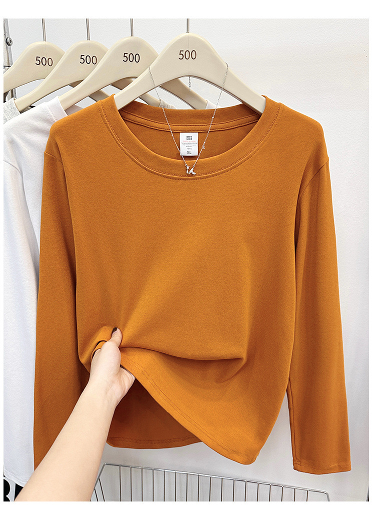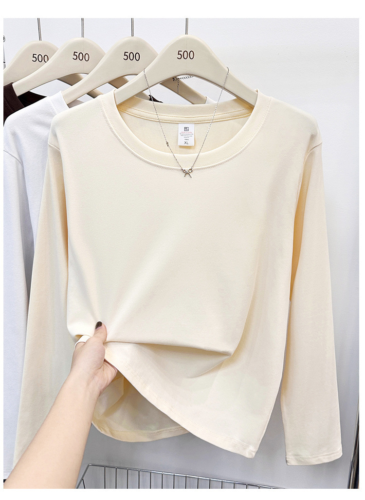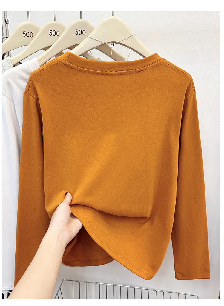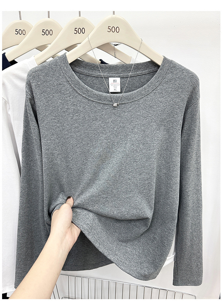 여성용 오른쪽 어깨 긴팔 티셔츠 가을 겨울 신작 여성 의류 2024 신작 라운드 넥 슬림 솔리드 컬러 바닥 탑 트렌디스토어 가기