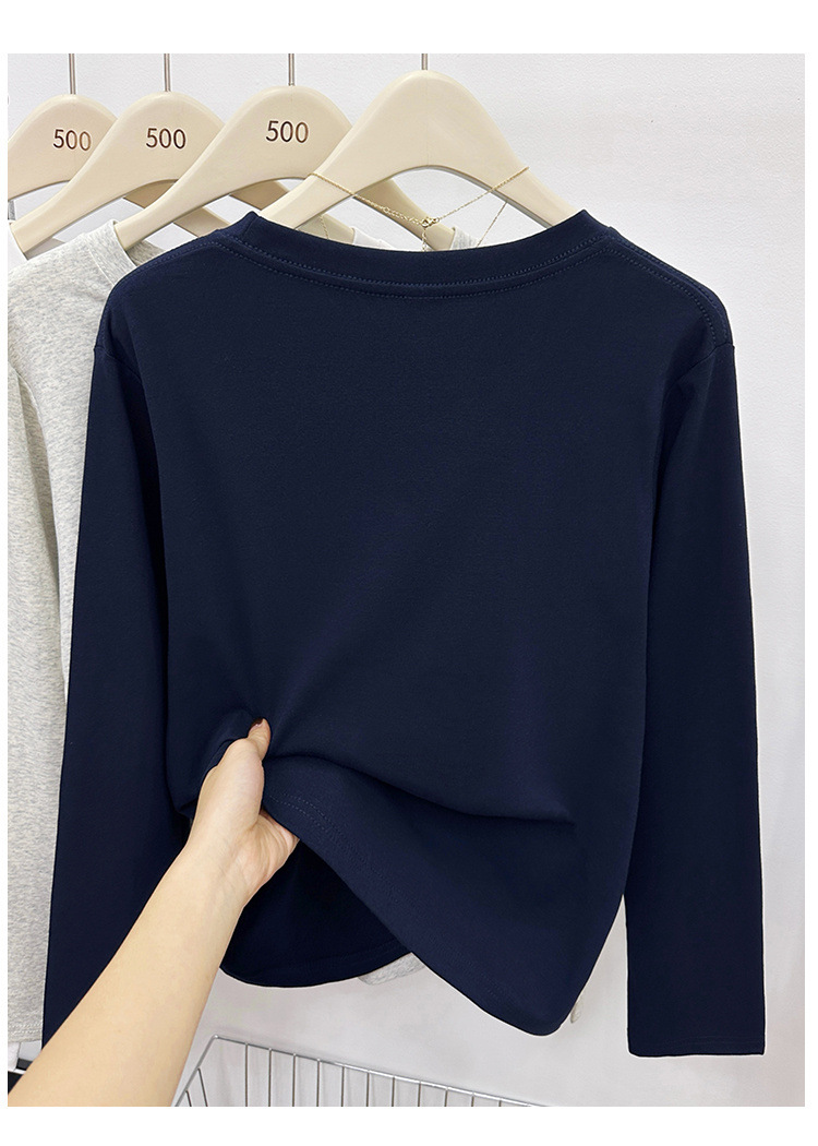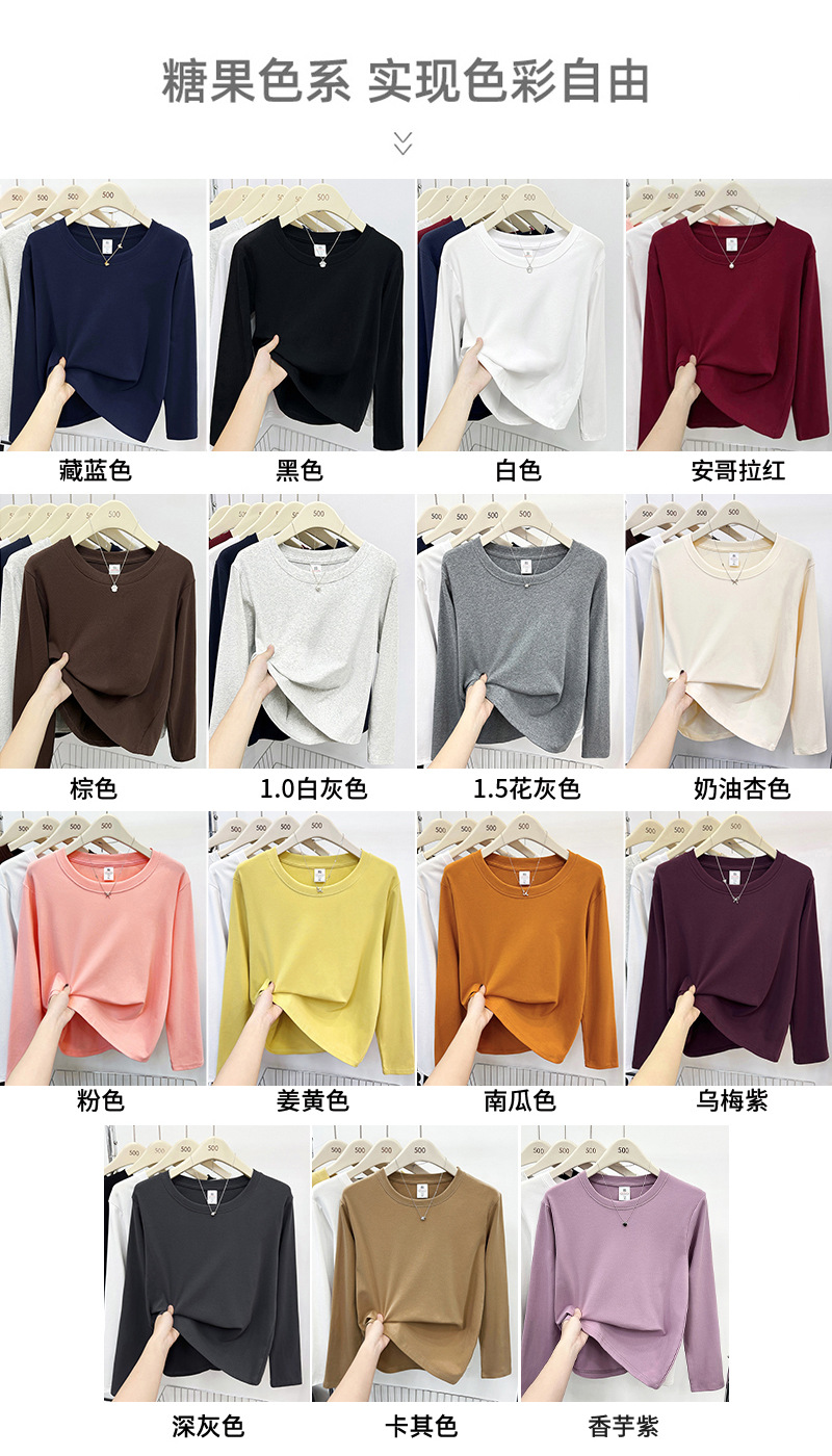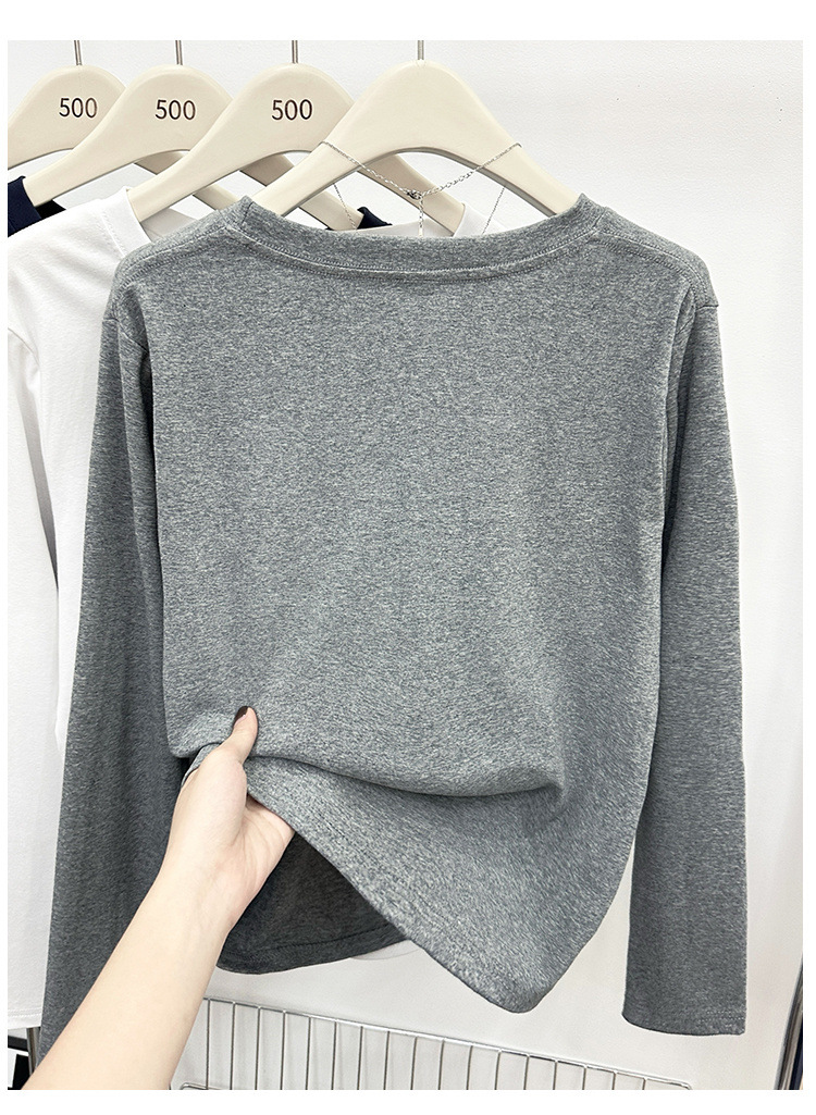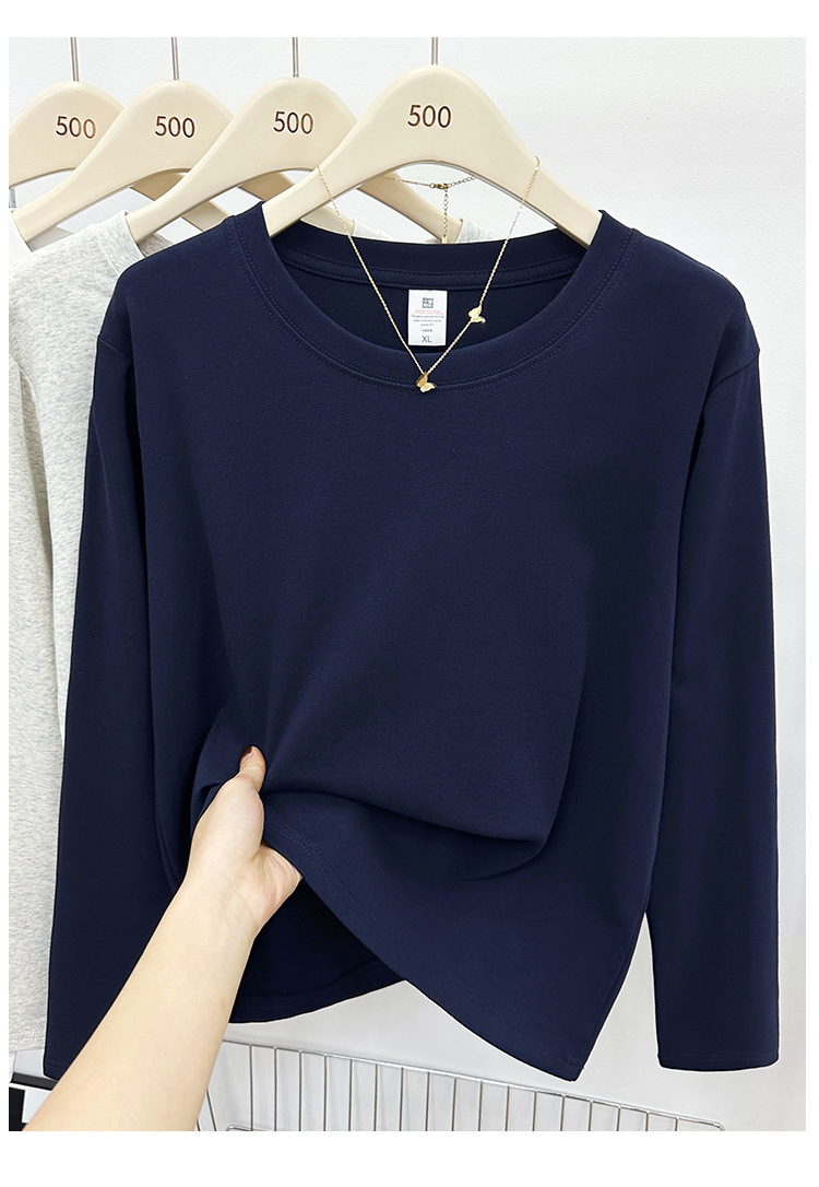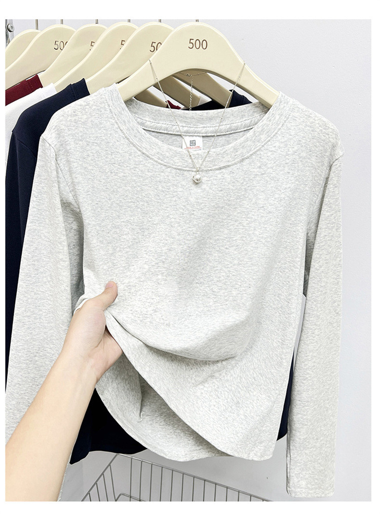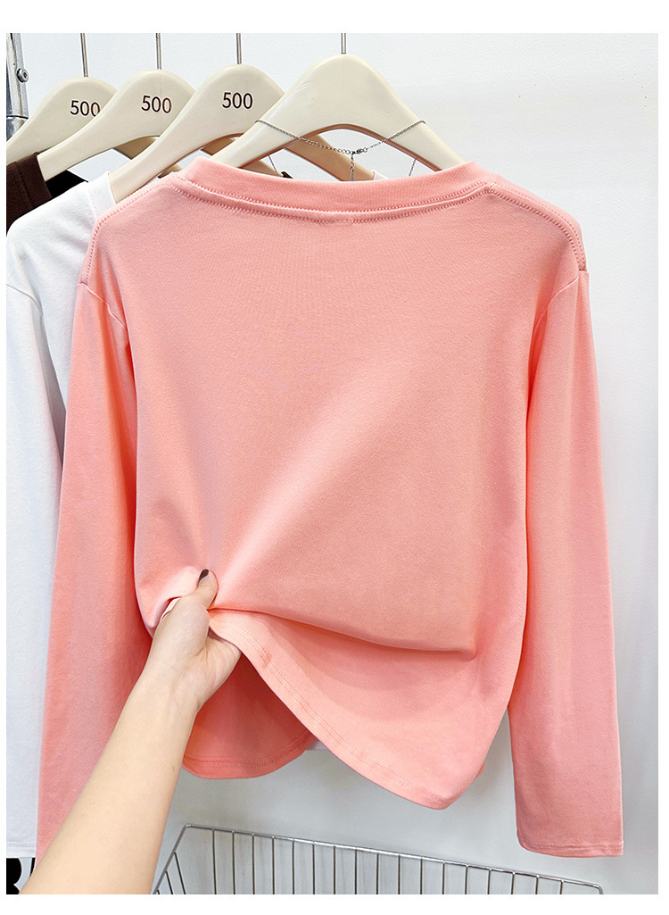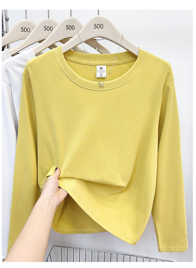 여성용 오른쪽 어깨 긴팔 티셔츠 가을 겨울 신작 여성 의류 2024 신작 라운드 넥 슬림 솔리드 컬러 바닥 탑 트렌디스토어 가기