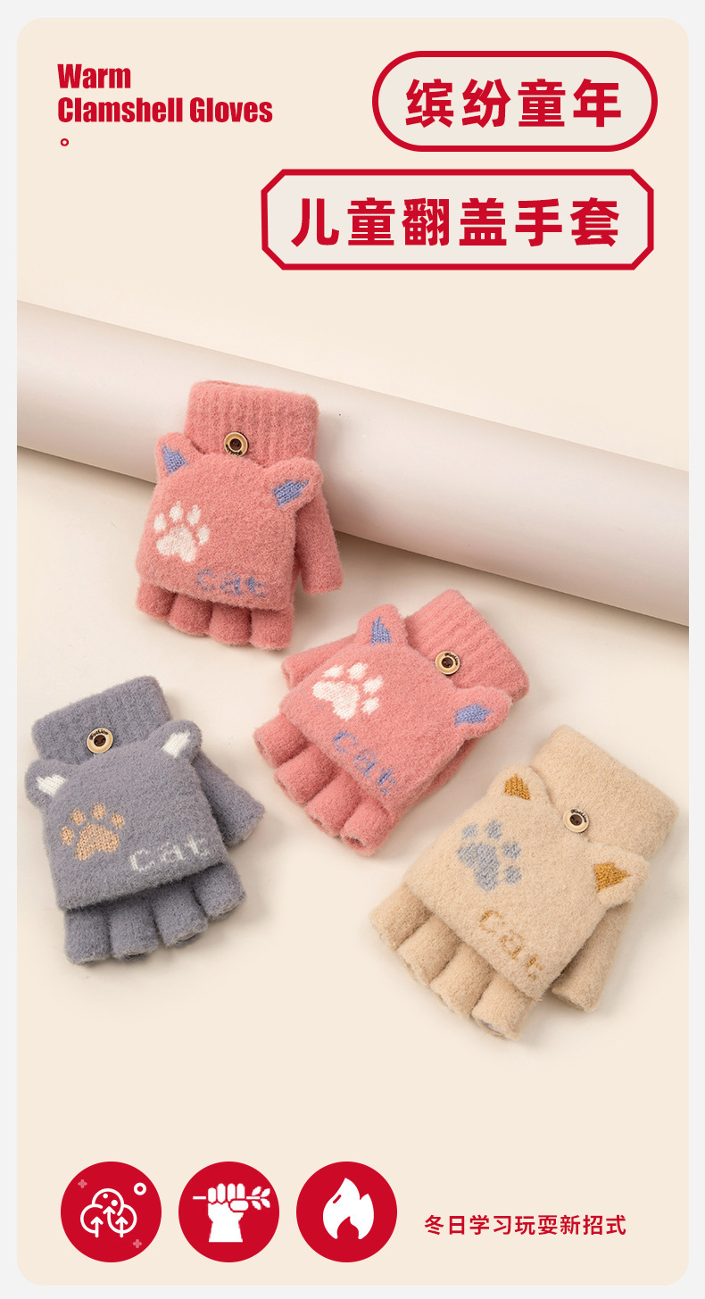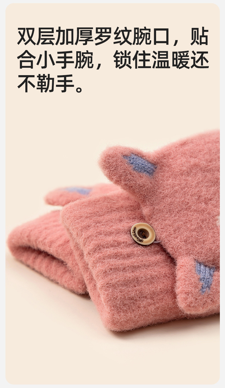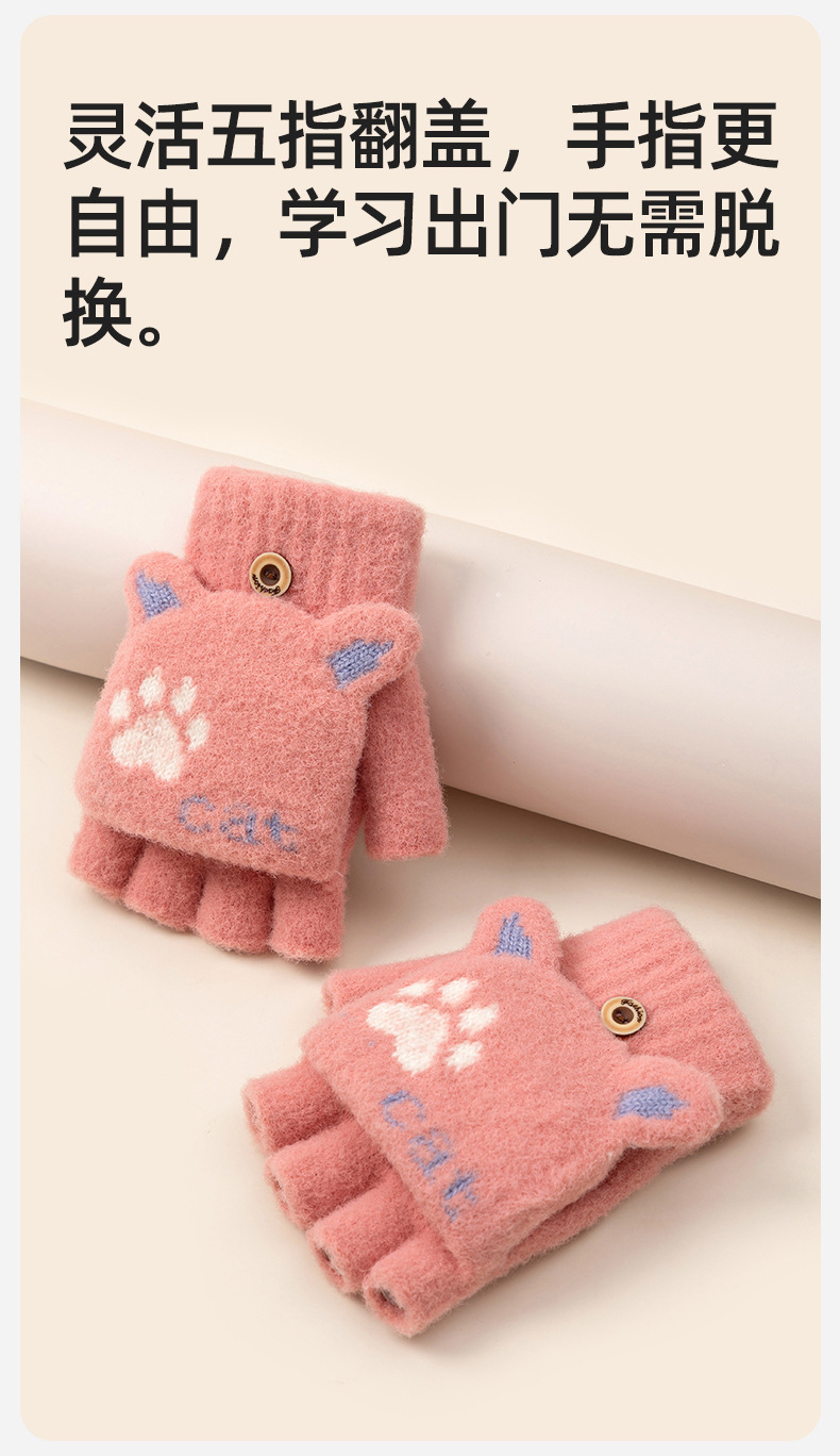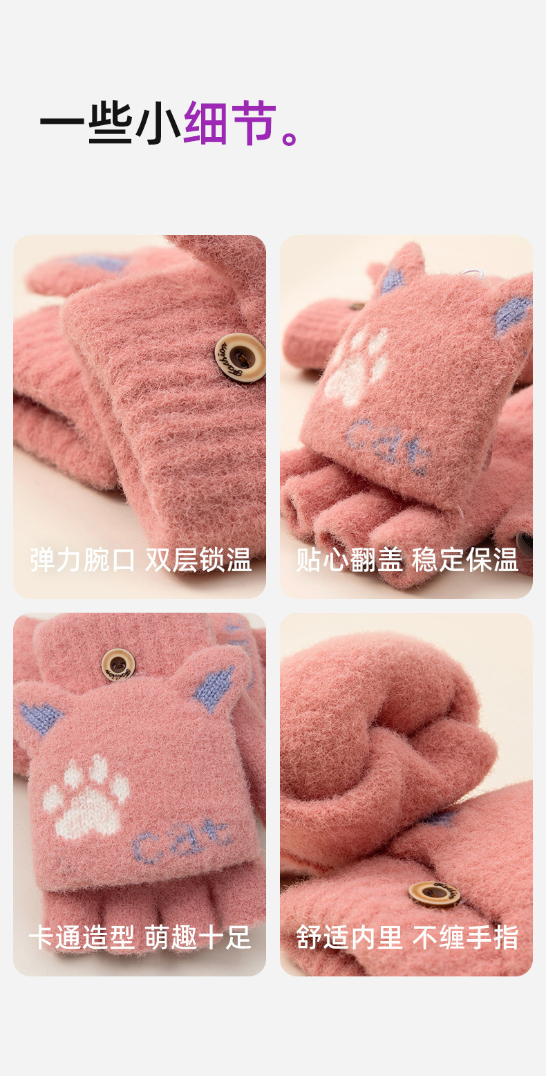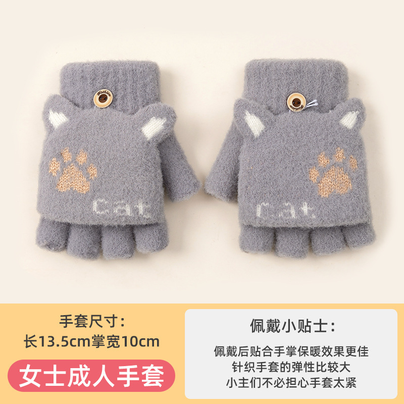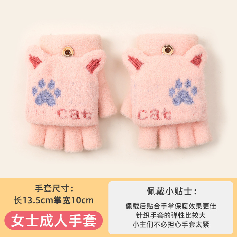 장갑 여자 겨울 반 손가락 오픈 손가락 플립 니트 감기 방지 따뜻한 사이클링 기모 학생들을위한 귀여운 글쓰기 장갑스토어 가기