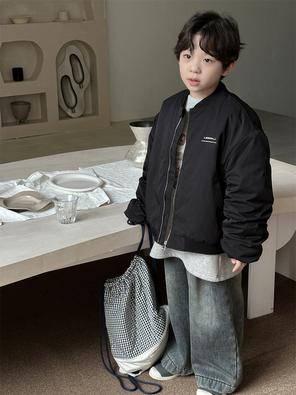 치즈와 고양이 아동복 소년 재킷 2024 겨울 새로운 한국 스타일 하이 스트리트 두꺼운 야구 재킷 트렌디스토어 가기