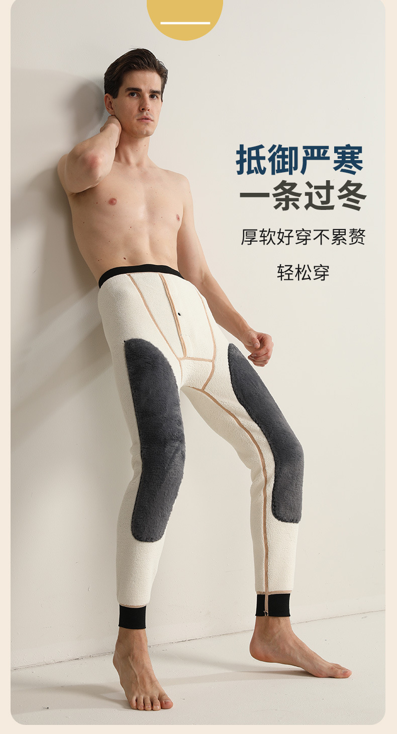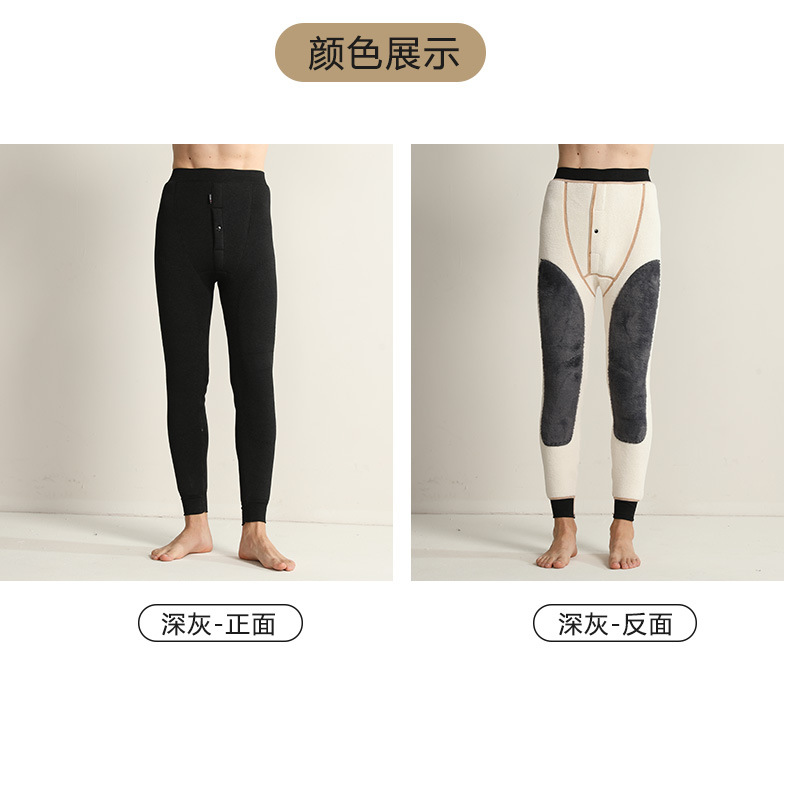 가을과 겨울 따뜻한 바지 남자의 두꺼운 기모 무릎 바지 허리 면화 바지 중년 및 노인 양고기 양털 줄 지어 북동쪽 면화 바지