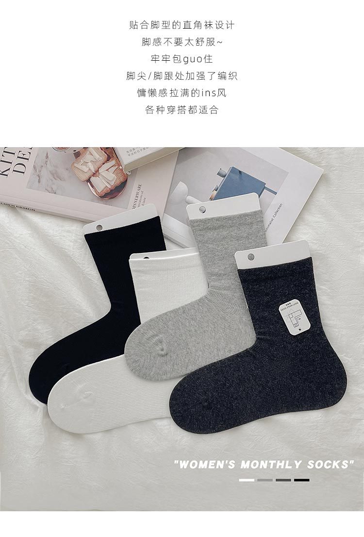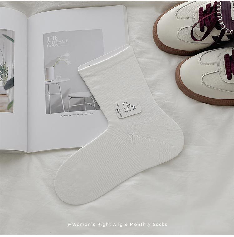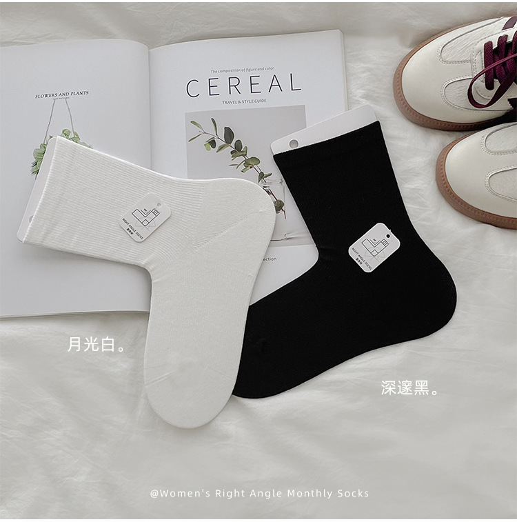 GOOD FA 2024 가을 겨울 여성용 양말 새로운 느슨한 입 면 인쇄되지 않은 여성용 직각 힐 중간 튜브 여성용 양말스토어 가기