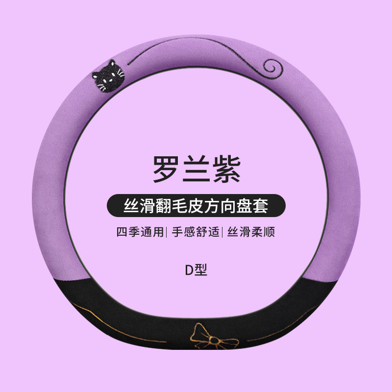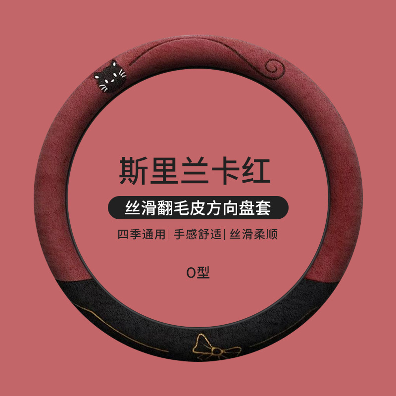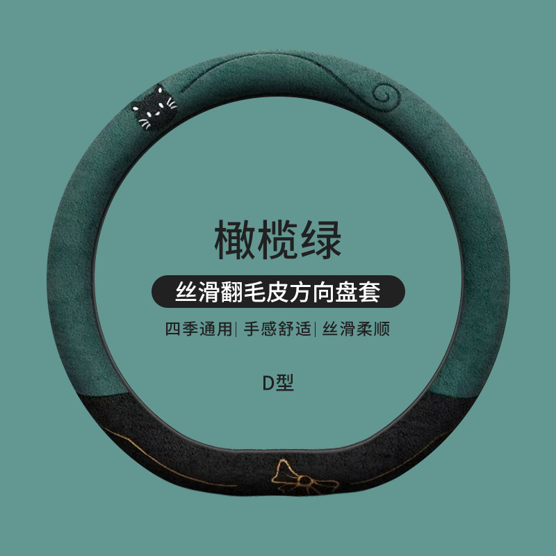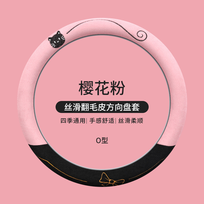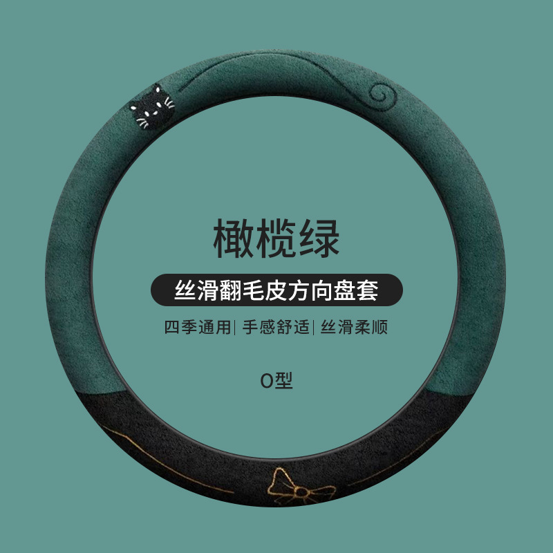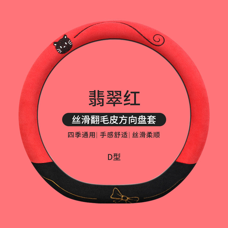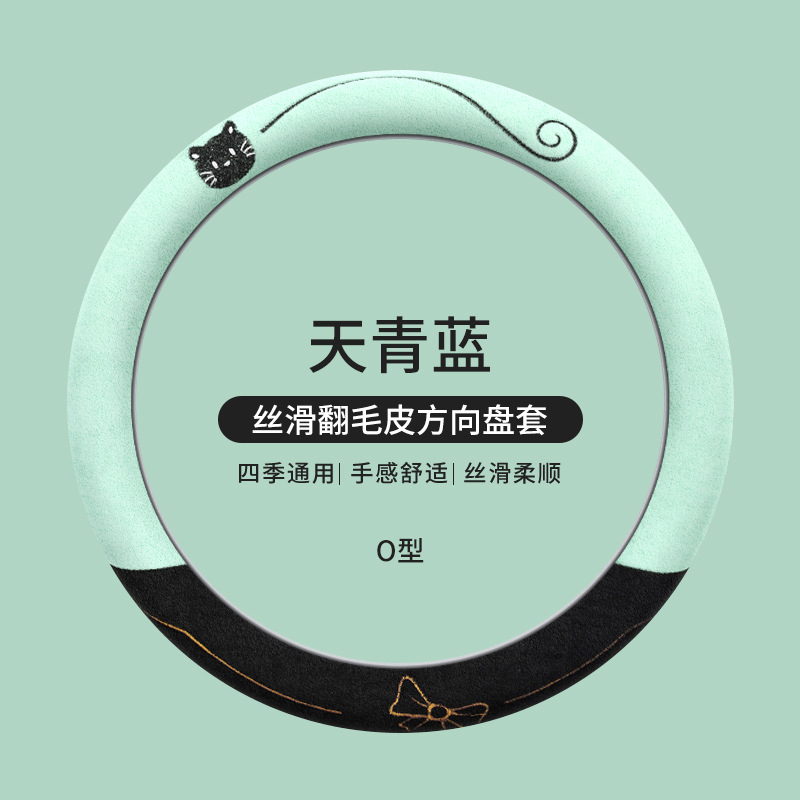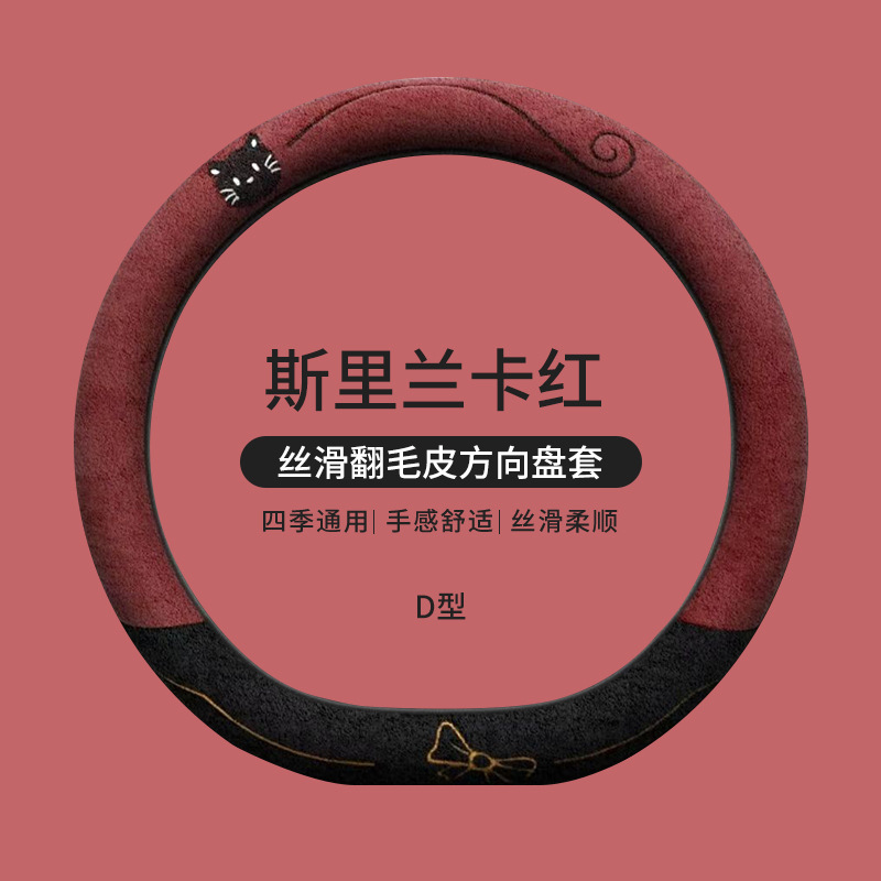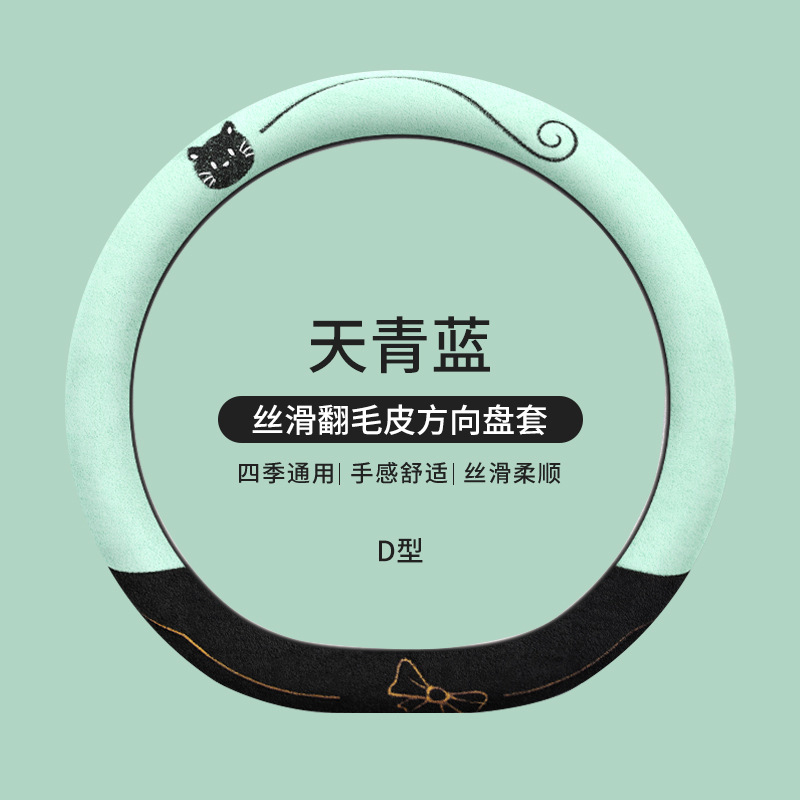 국경 간 스웨이드 자동차 스티어링 휠 커버 AliExpress 겨울 따뜻한 짧은 플러시 커버 만화 자동차 용품스토어 가기