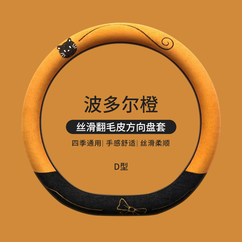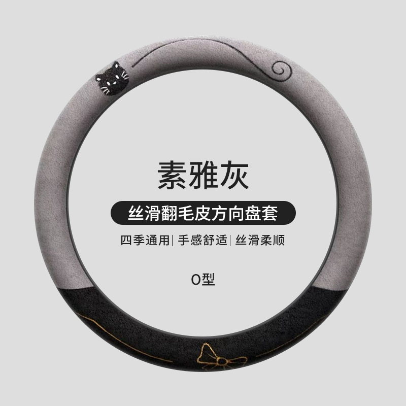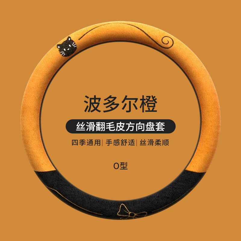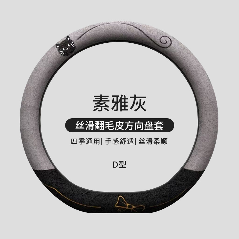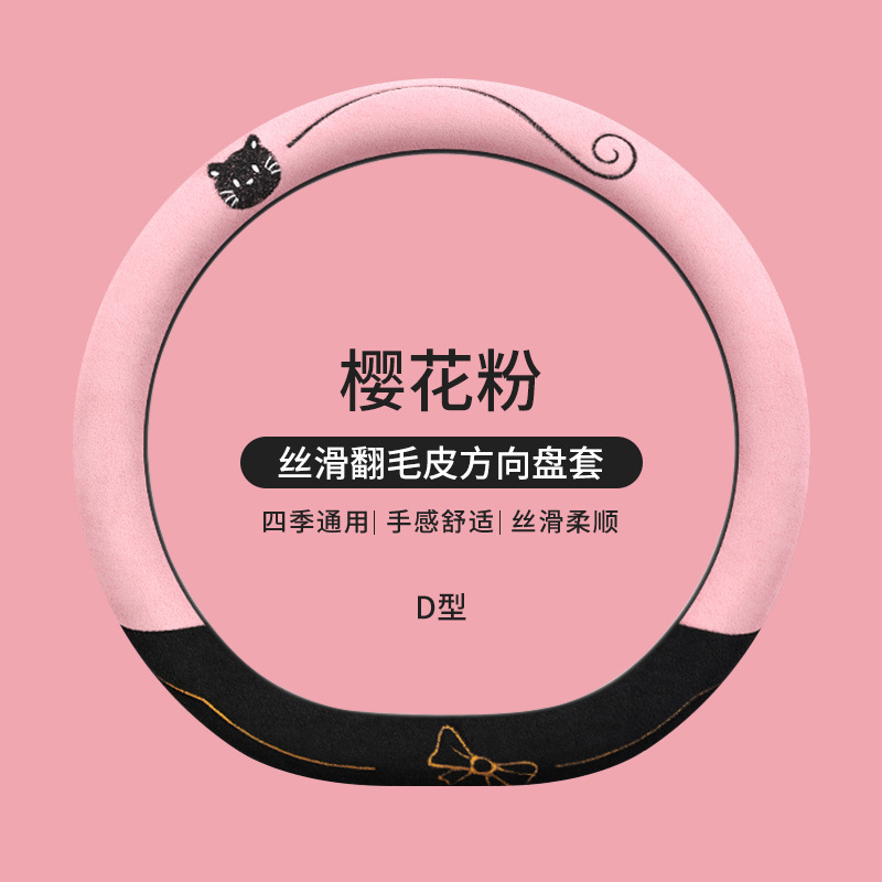 국경 간 스웨이드 자동차 스티어링 휠 커버 AliExpress 겨울 따뜻한 짧은 플러시 커버 만화 자동차 용품