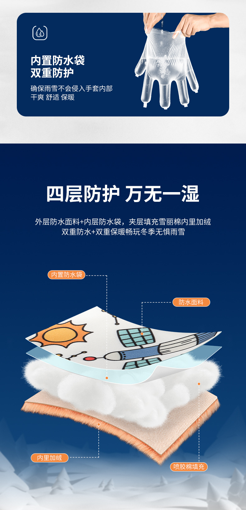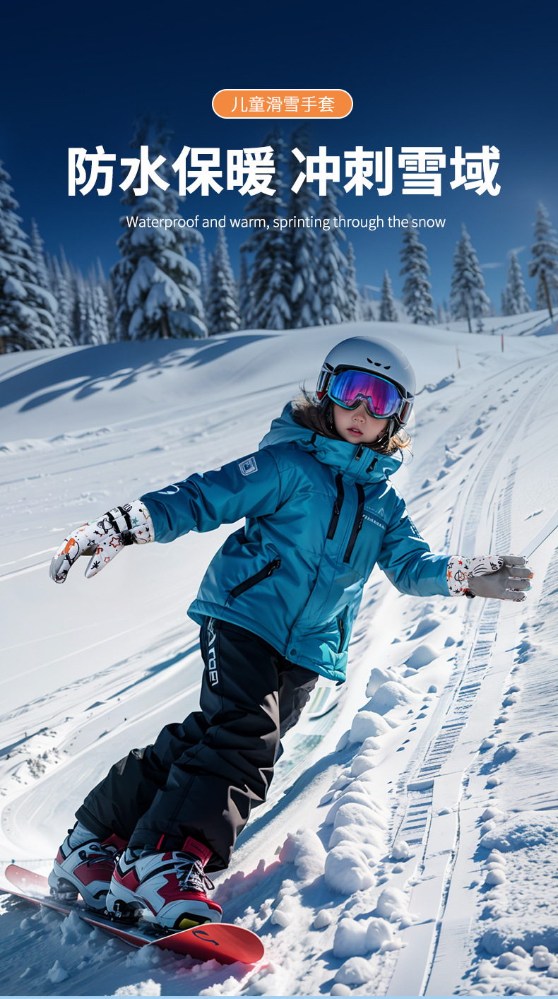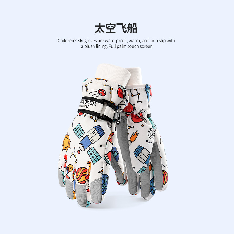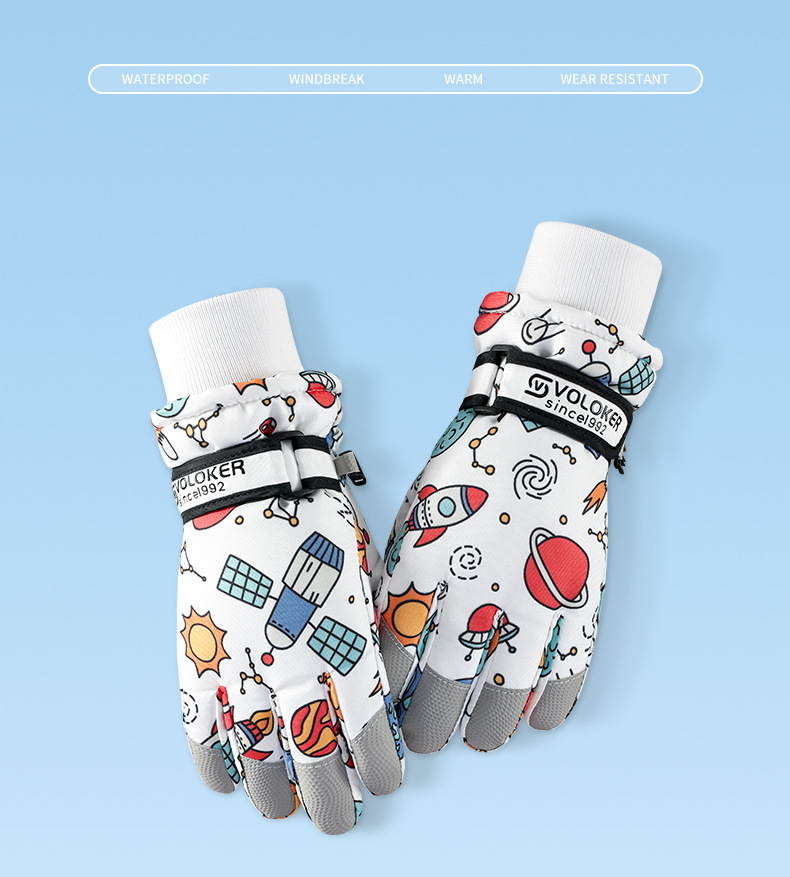 새로운 겨울 어린이 스키 장갑 방수, 미끄럼 방지, 벨벳, 두껍고 따뜻한 사이클링 방한 만화 장갑 남성과 여성을위한