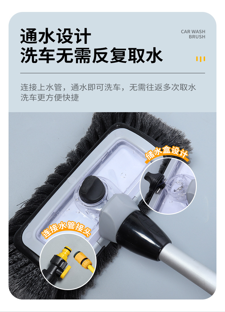 세차용 브러시, 곡선형 손잡이, 부드러운 솔, 차량 손상 없음, 알루미늄 합금, 물통 연결, 세척 브러시, 자동차 및 오토바이용