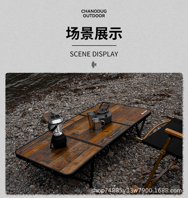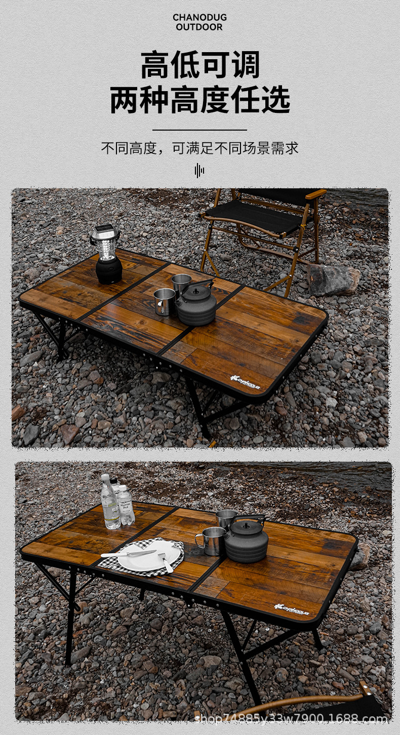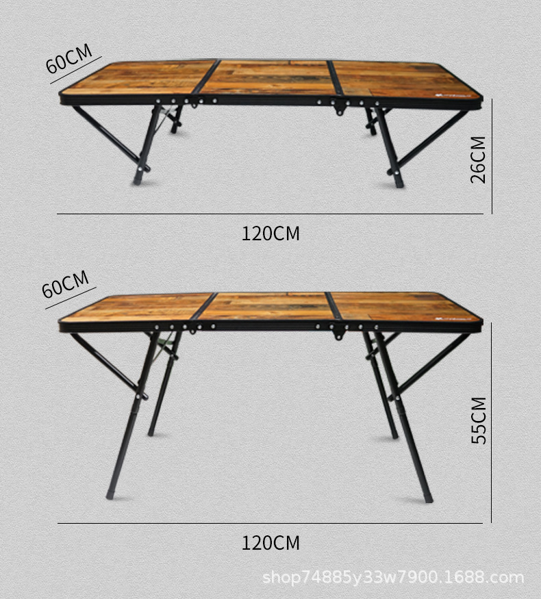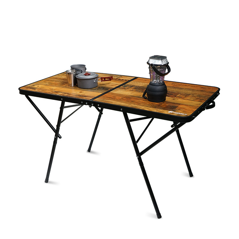 야외용 알루미늄 합금 접이식 테이블, 나무 무늬 캠핑 피크닉 테이블, 화로 주변 차 끓이기, 휴대용 바베큐, 조절 가능한 철제 테이블스토어 가기