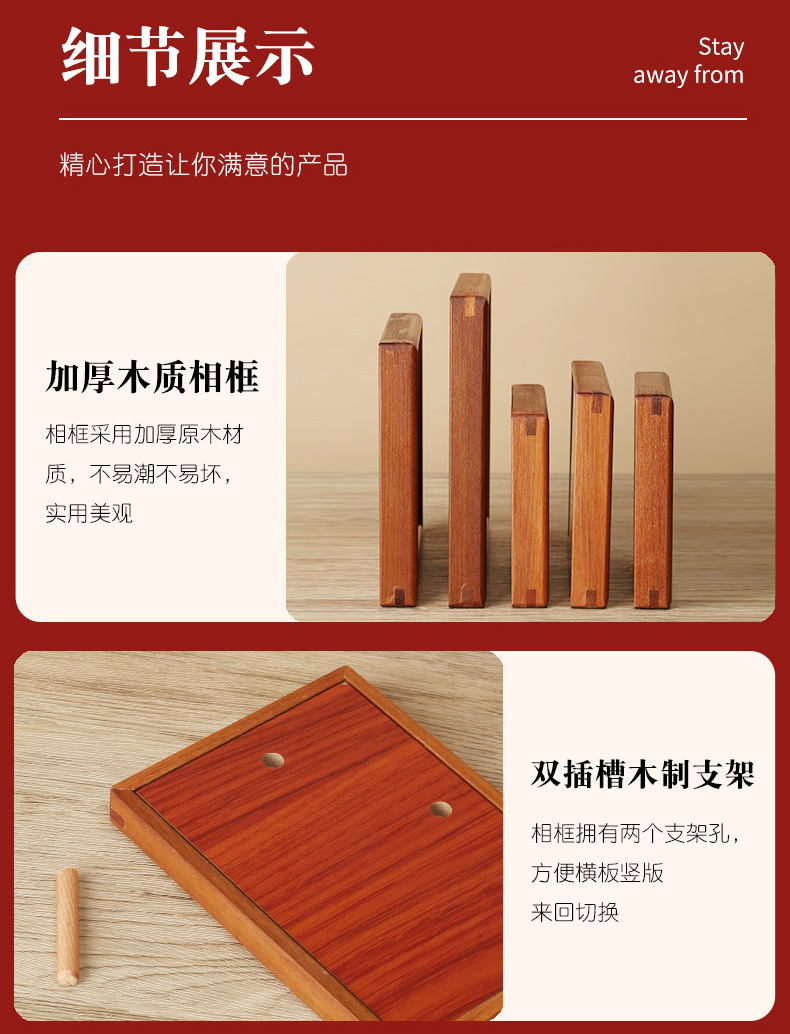 원목 액자 원목 접합 구조 백단목 티크 원형 모서리 블랙 월넛 골든 백단목 색상 테이블 액자 빈 액자
