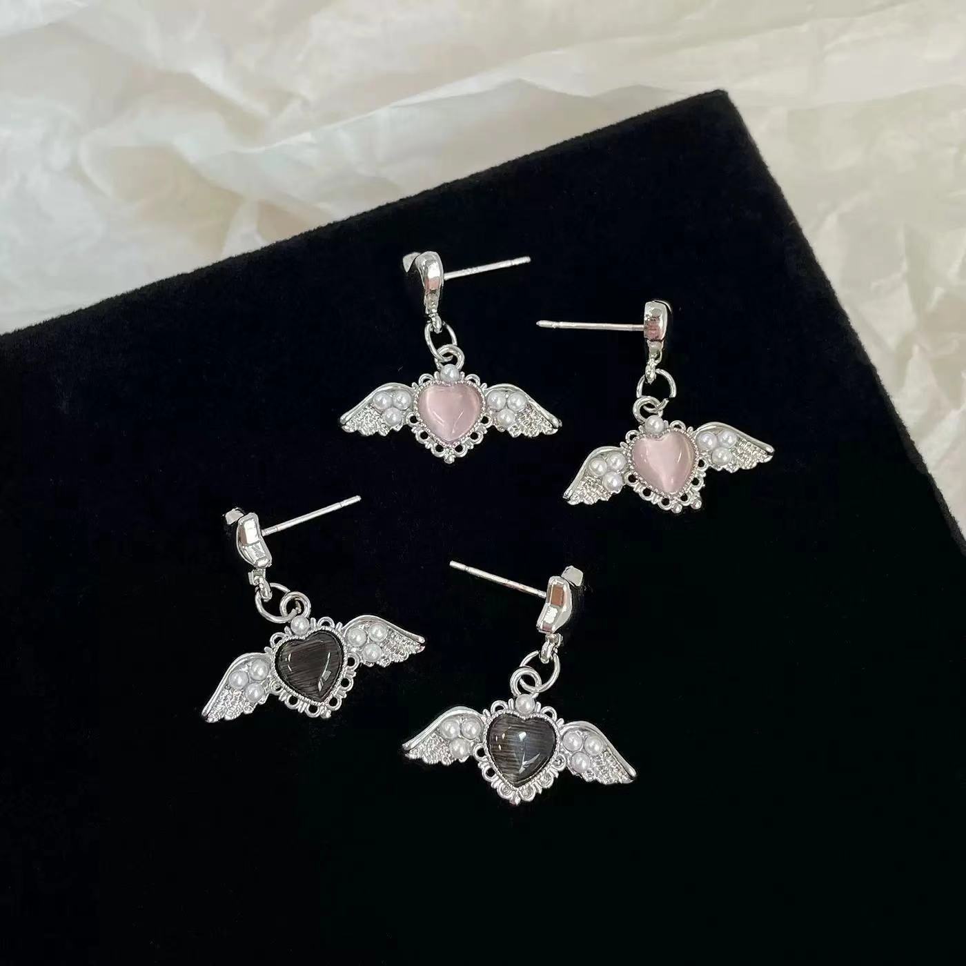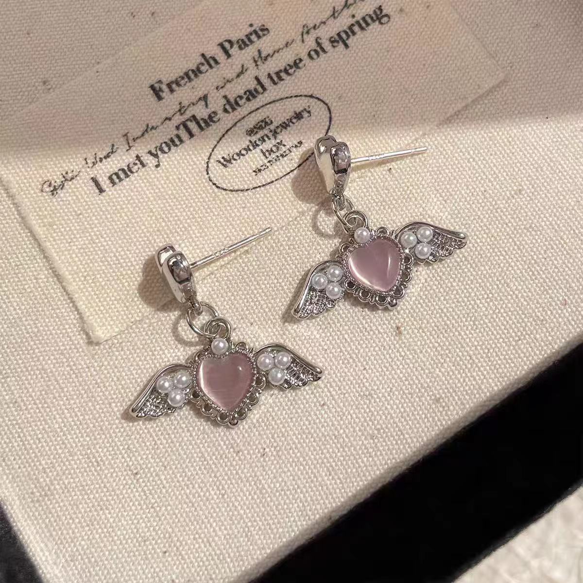 새로운 천사 날개 진주 사랑 귀걸이 여성용 바늘 달콤한 멋진 소녀 틈새 디자인 감각 절묘한 펜던트 귀걸이스토어 가기