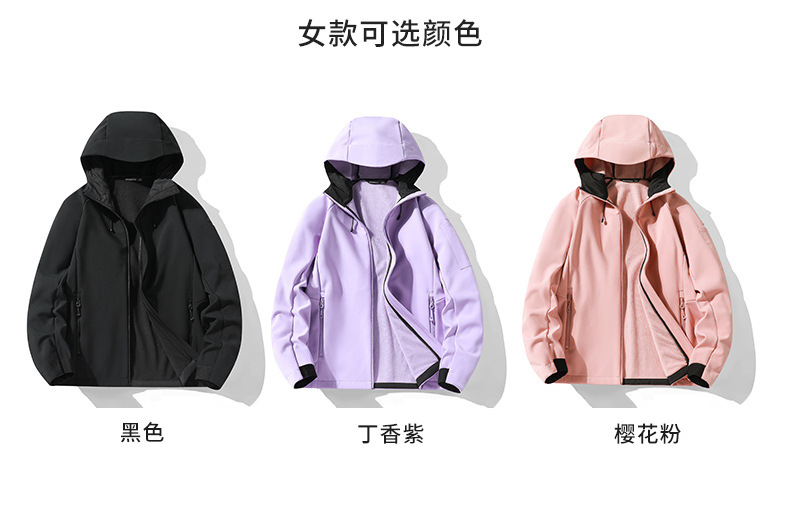 여성용 아웃도어 소프트 쉘 재킷, 발수 및 방풍 후드 스포츠 재킷, 벨벳 통기성 소프트 쉘 탑, 남성용 재킷