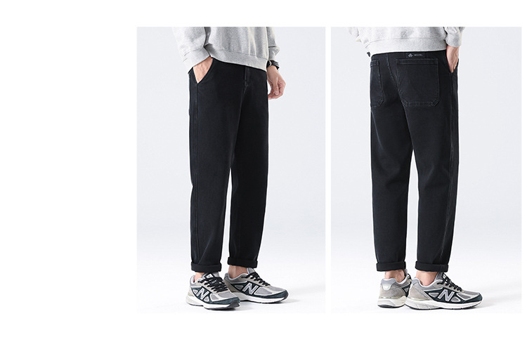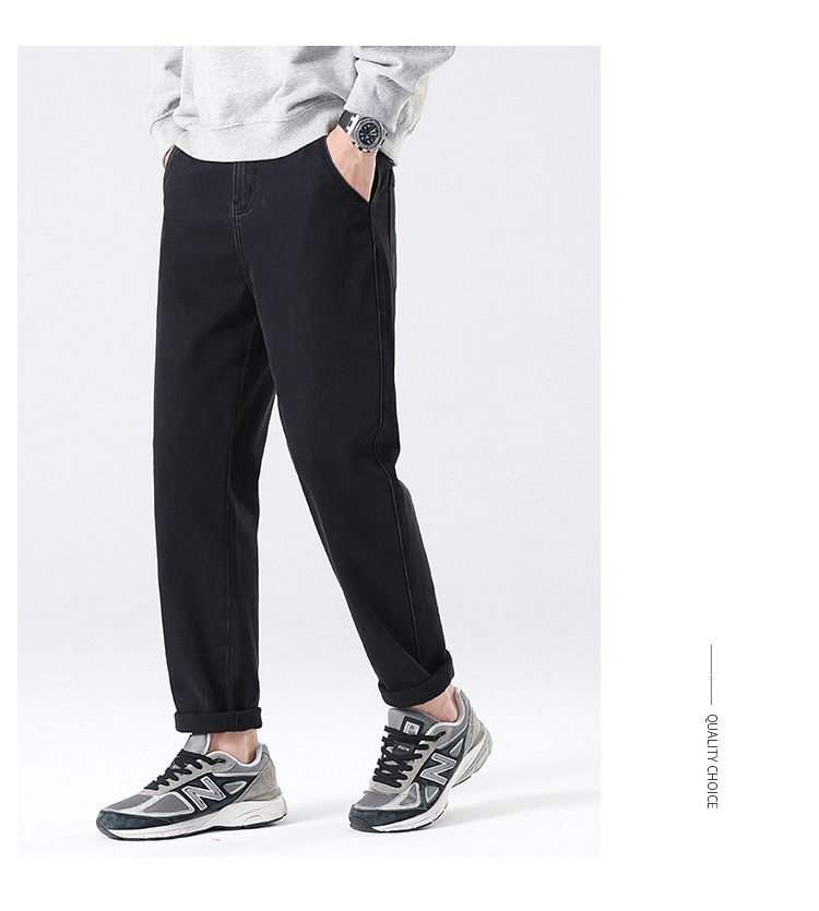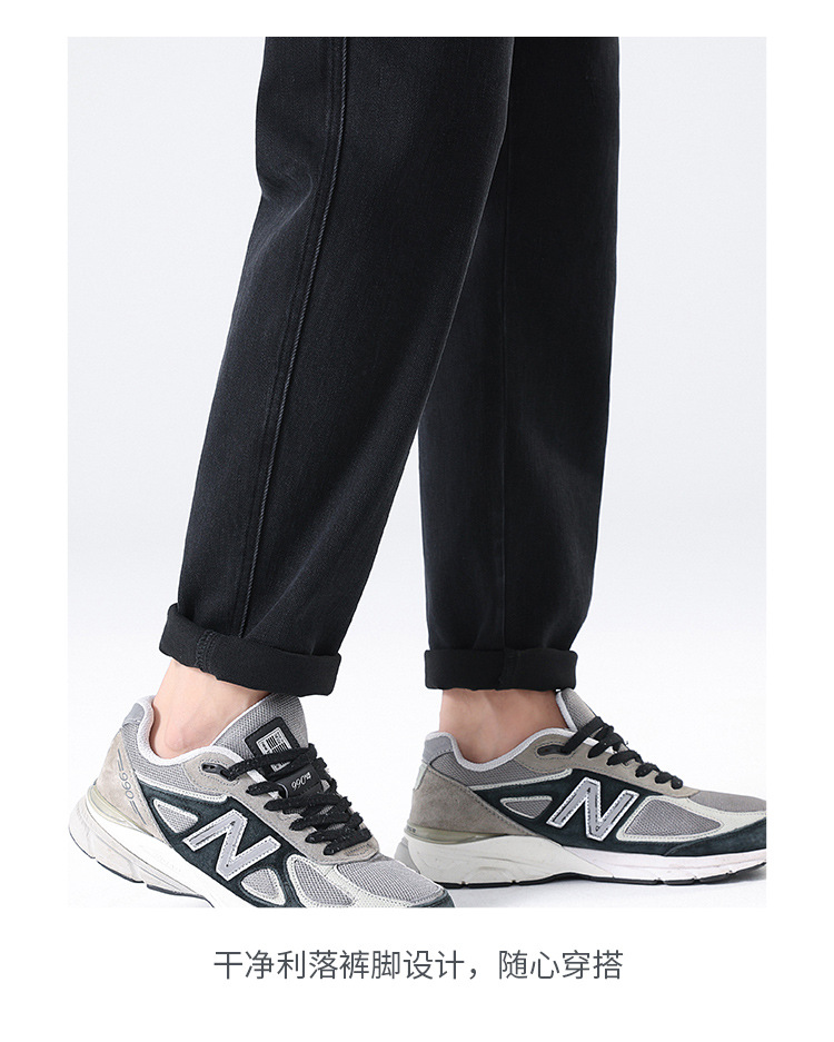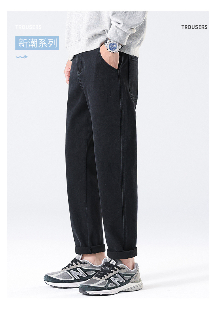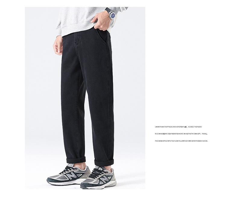 2024 년 새로운 블랙 스트레치 청바지 남성 자른 바지 캐주얼 바지 소년 가을과 겨울 느슨한 스트레이트 바지