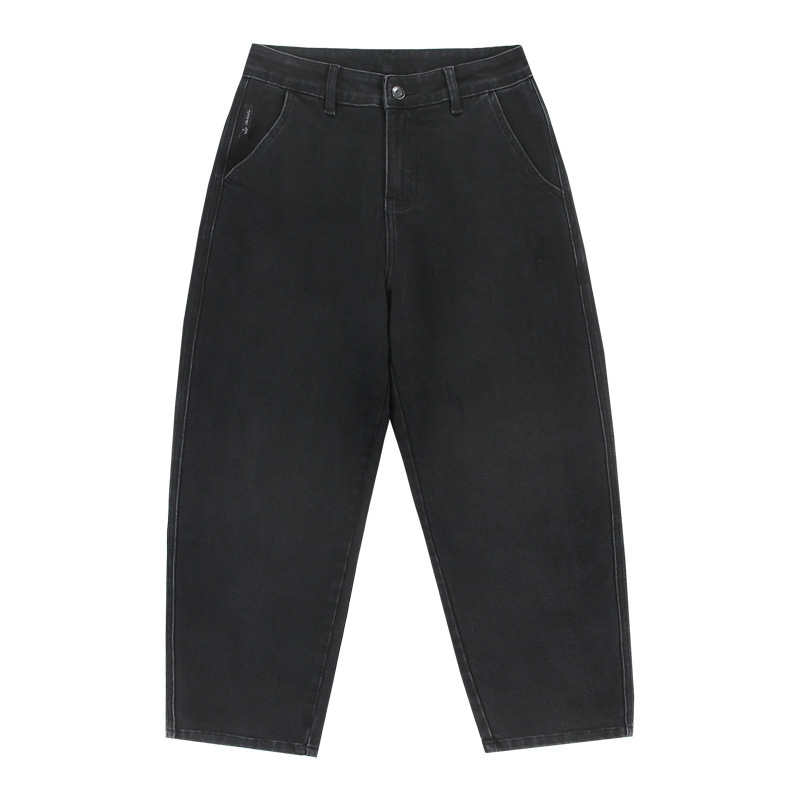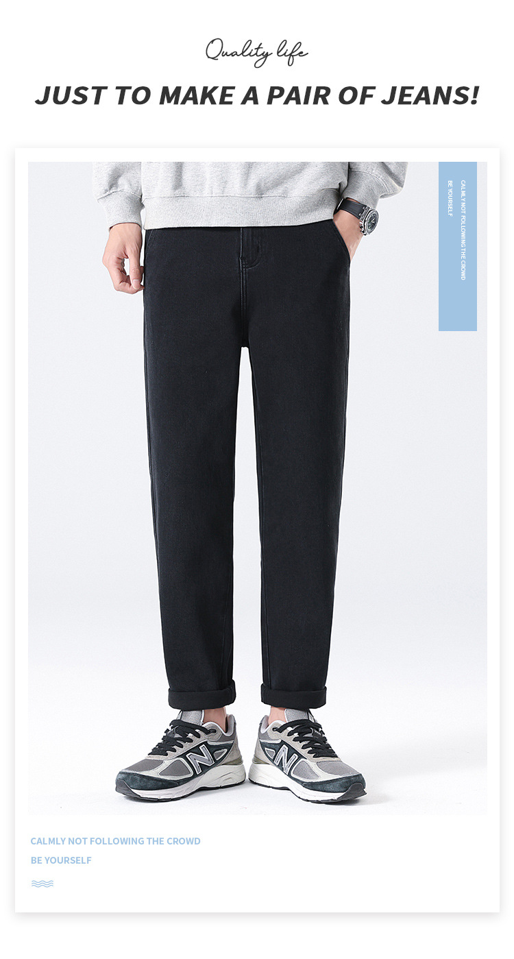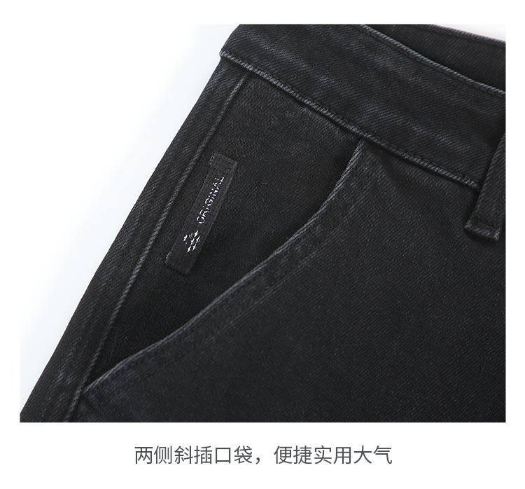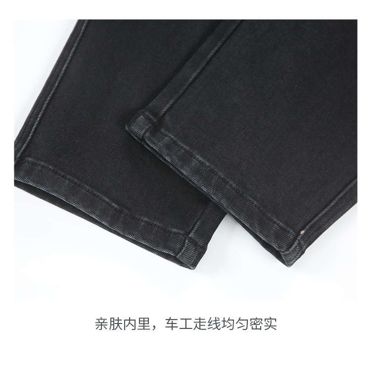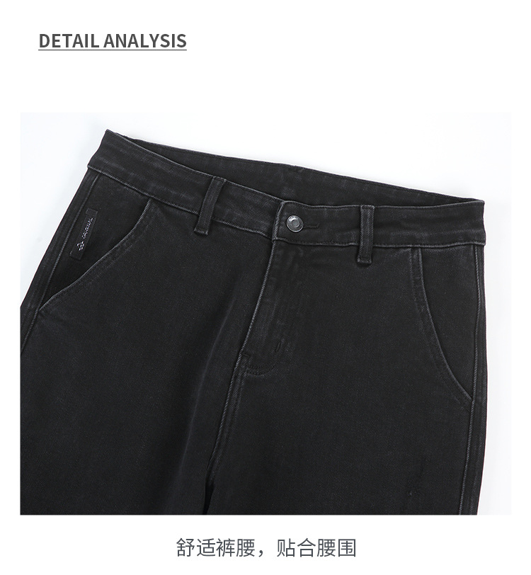 2024 년 새로운 블랙 스트레치 청바지 남성 자른 바지 캐주얼 바지 소년 가을과 겨울 느슨한 스트레이트 바지스토어 가기
