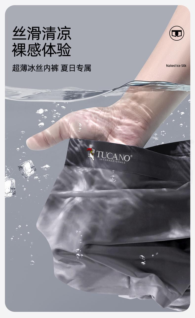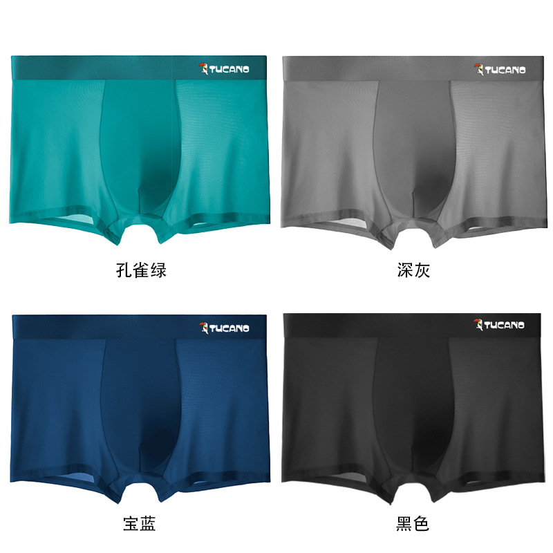 딱따구리 남자 속옷 아이스 실크 추적없는 남자의 통기성 땀-위킹 항균 편안한 복서 속옷 단색 알몸 유행스토어 가기
