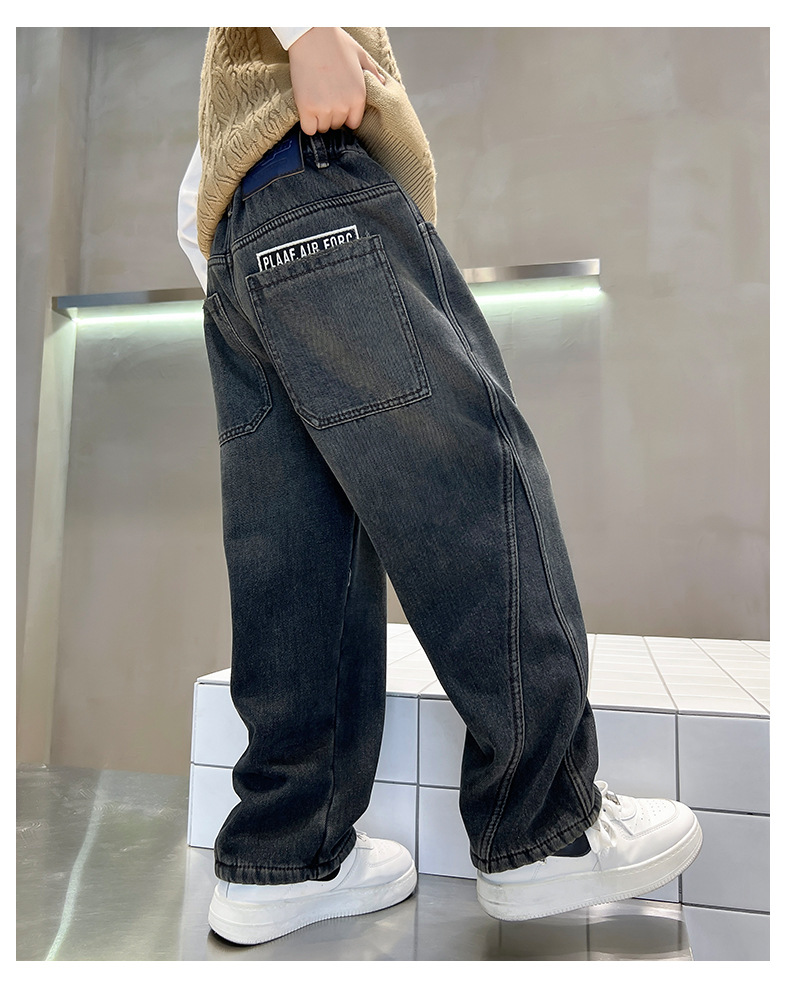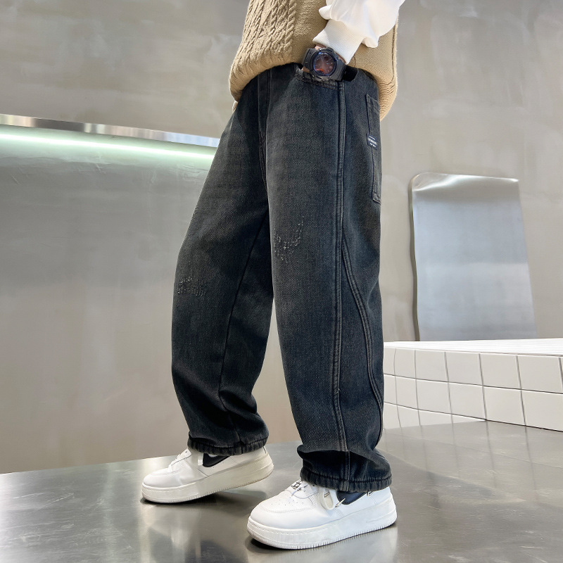 남아 바지 봄 가을 2025 신상 트렌디하고 멋진 남자아이 가을 겨울 긴바지 아동용 기모 데님 팬츠