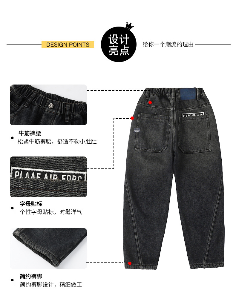 남아 바지 봄 가을 2025 신상 트렌디하고 멋진 남자아이 가을 겨울 긴바지 아동용 기모 데님 팬츠스토어 가기