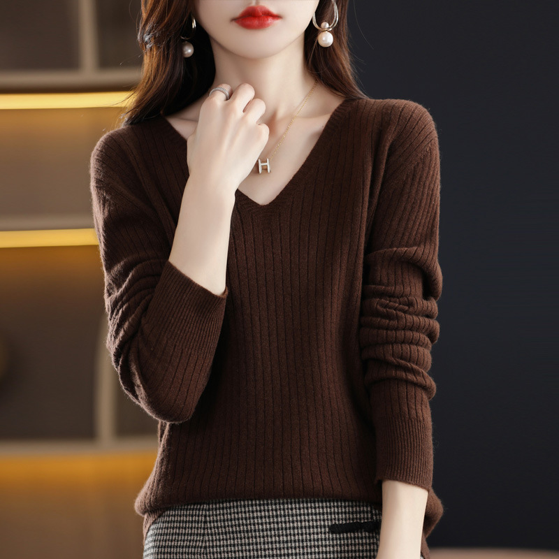여성용 니트 스웨터, 브이넥 스웨터, 긴팔 숏탑, 스타일리시한 이너웨어, 수출 도매