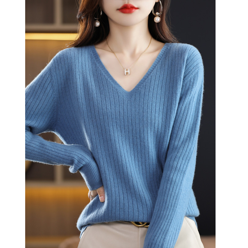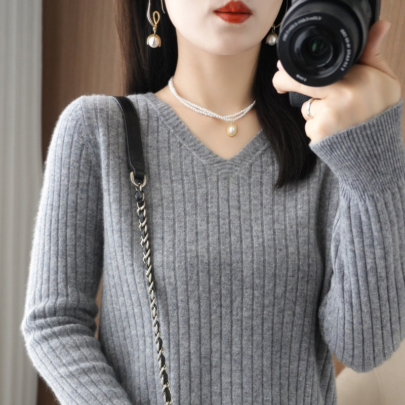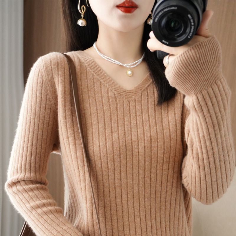 여성용 니트 스웨터, 브이넥 스웨터, 긴팔 숏탑, 스타일리시한 이너웨어, 수출 도매스토어 가기
