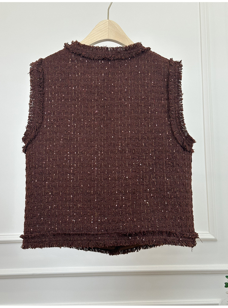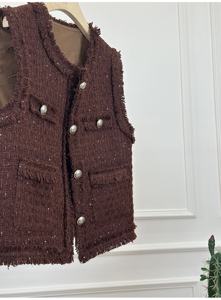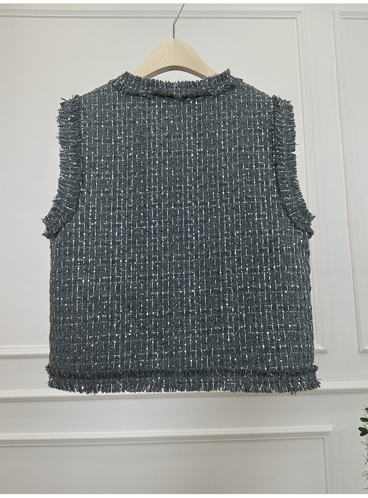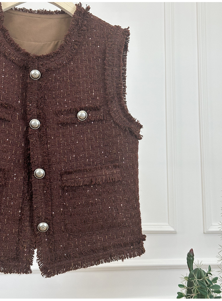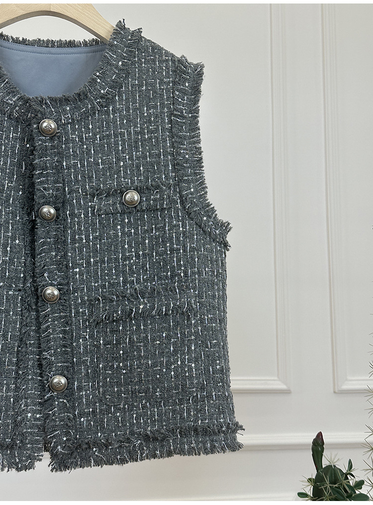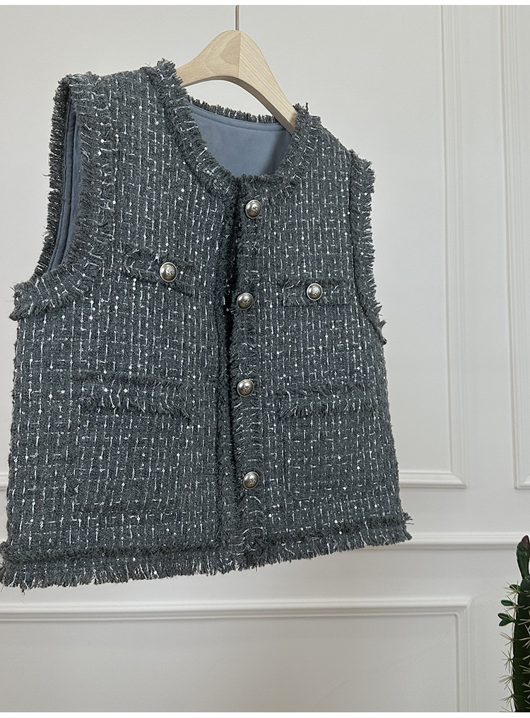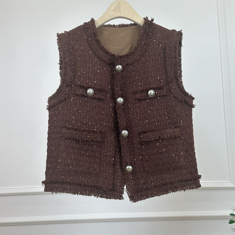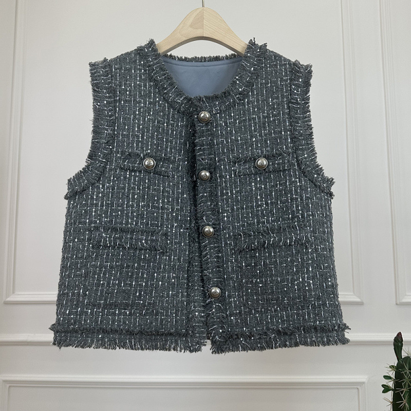 2025년 한국판 디자인 감각적인 샤넬 스타일 조끼, 패셔너블하고 나이를 줄여주는 슬림핏, 우아한 레트로 스타일 여성 조끼 자켓