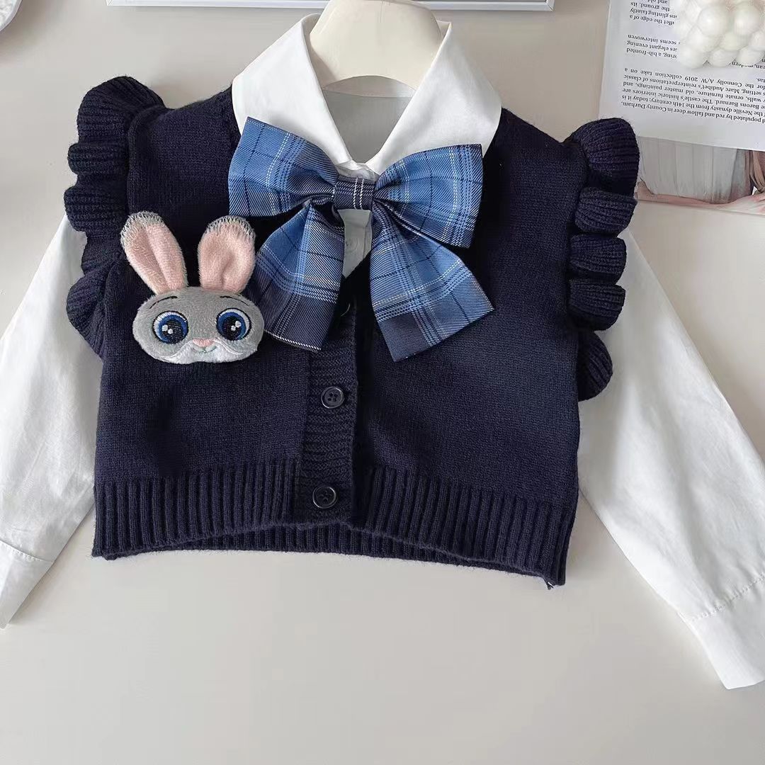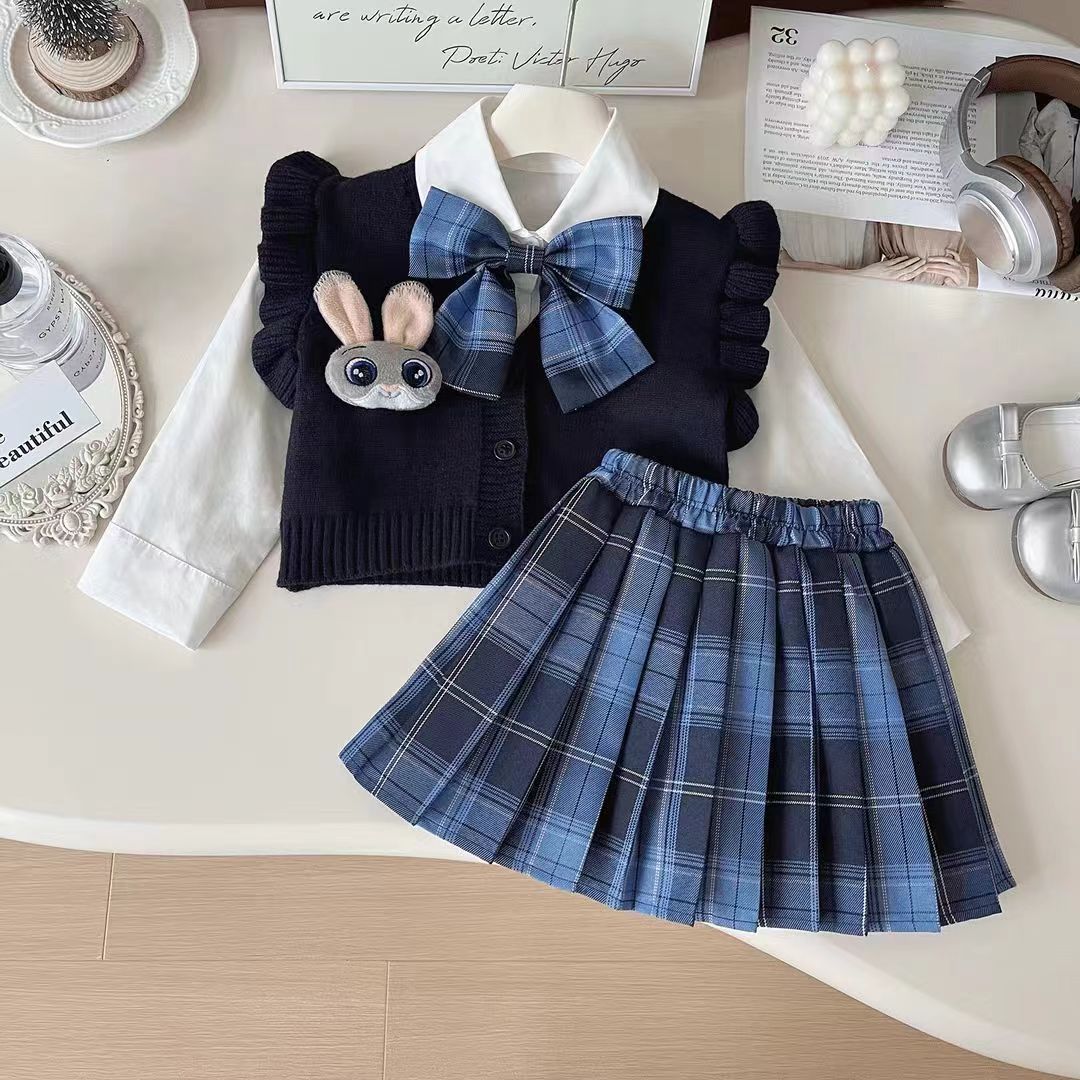 소녀 토끼 경찰관 가을 세트 어린이 2024 새로운 대학 소녀의 외국 스타일 3 피스 JK스토어 가기