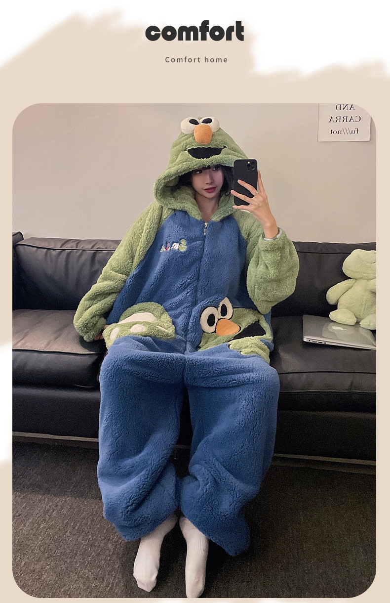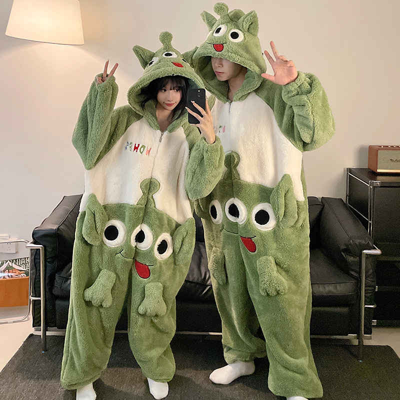 커플 잠옷 여자의 겨울 산호 양털 남자의 두꺼운 플러스 사이즈 홈 옷 귀여운 기모 겨울 플란넬스토어 가기