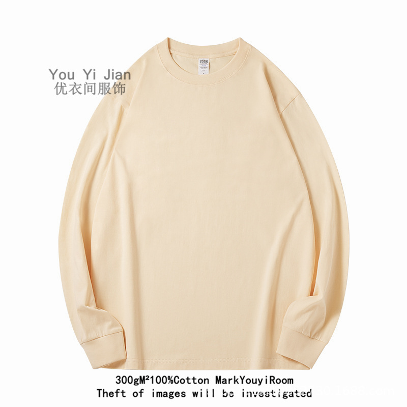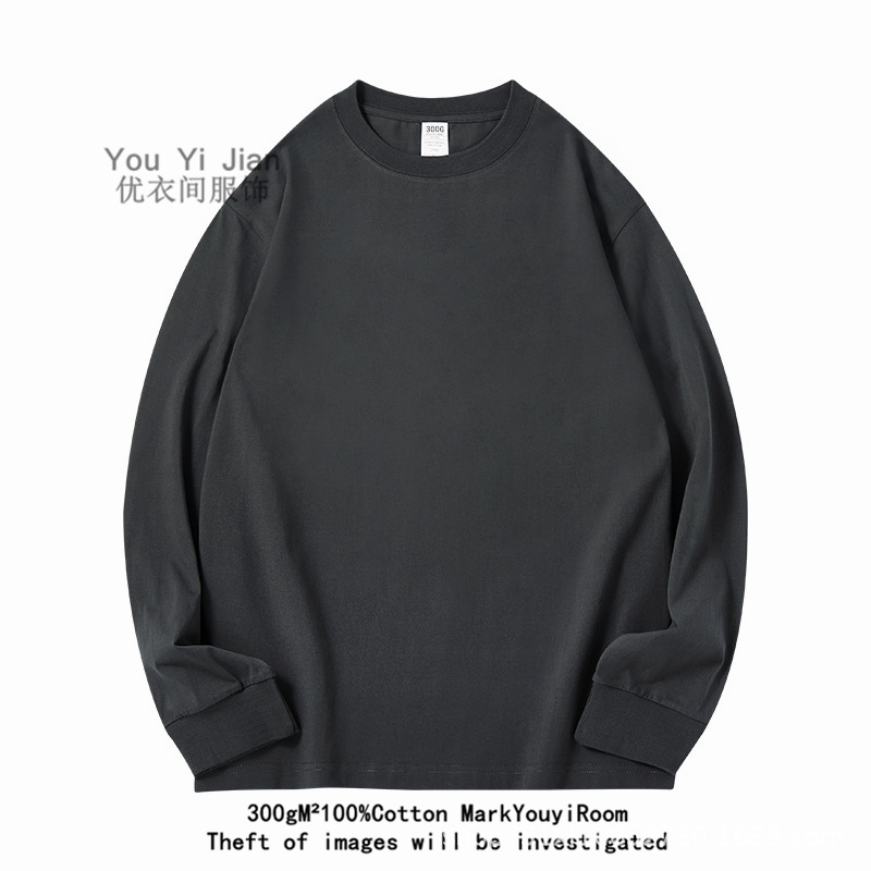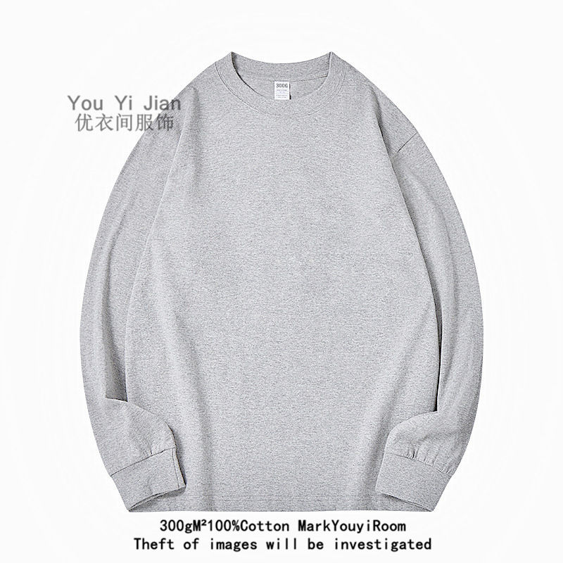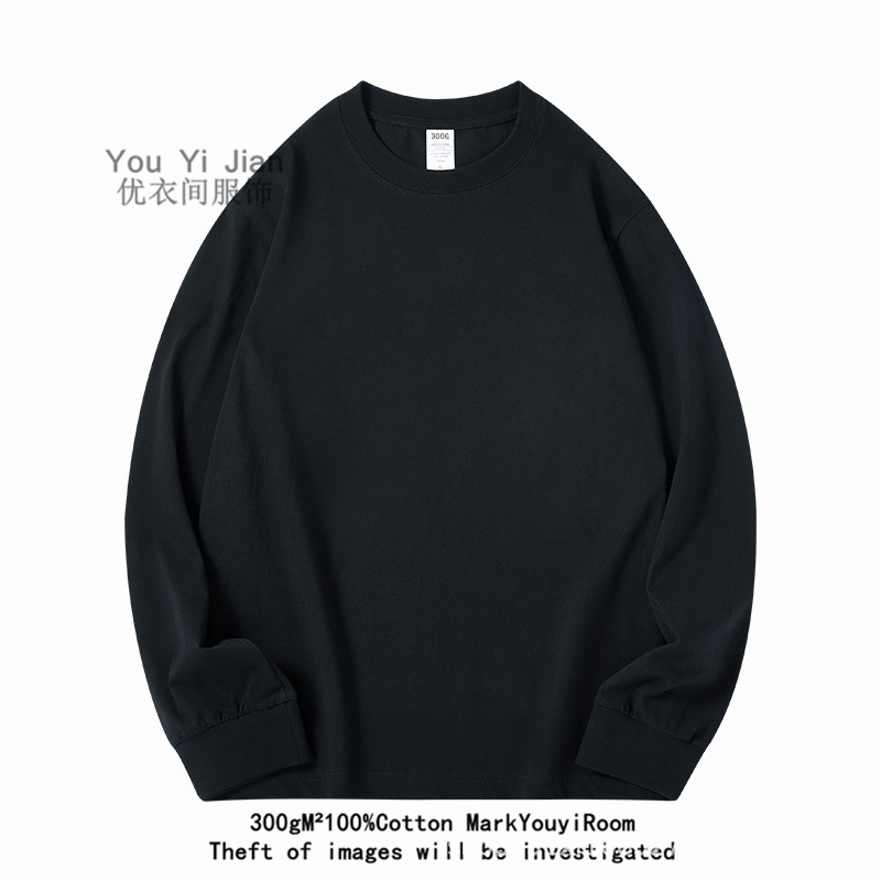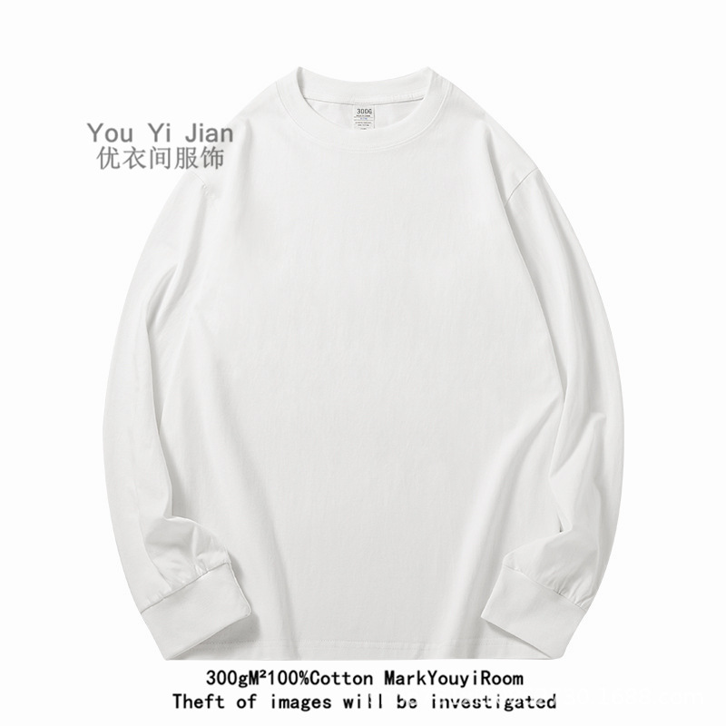 300g 헤비 솔리드 컬러 긴 소매 티셔츠 남성과 여성의 순수 코튼 봄과 가을 순수 화이트 블랙 느슨한 내복 남성스토어 가기