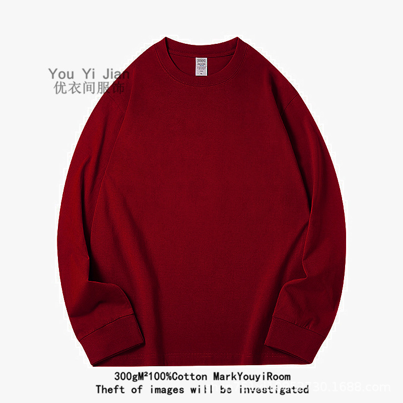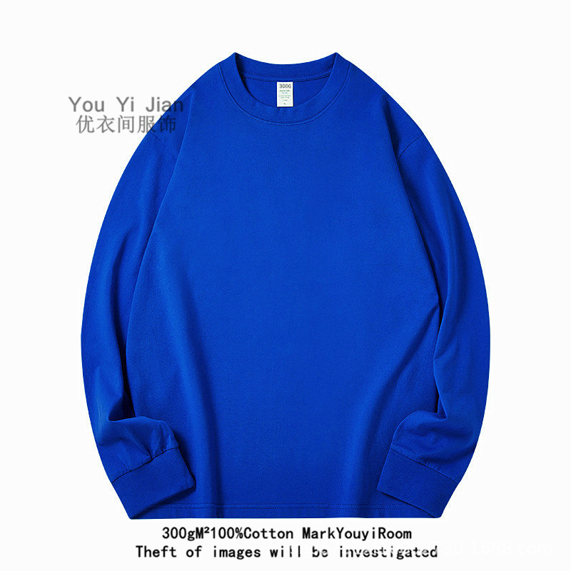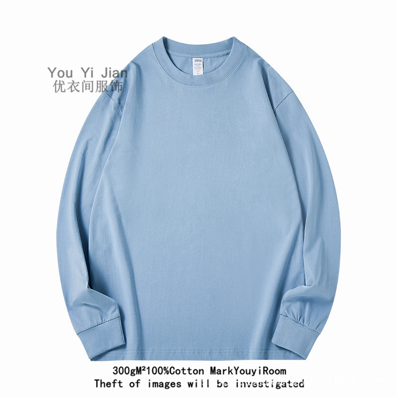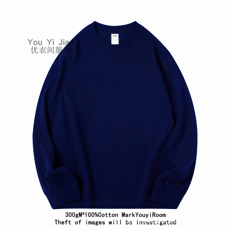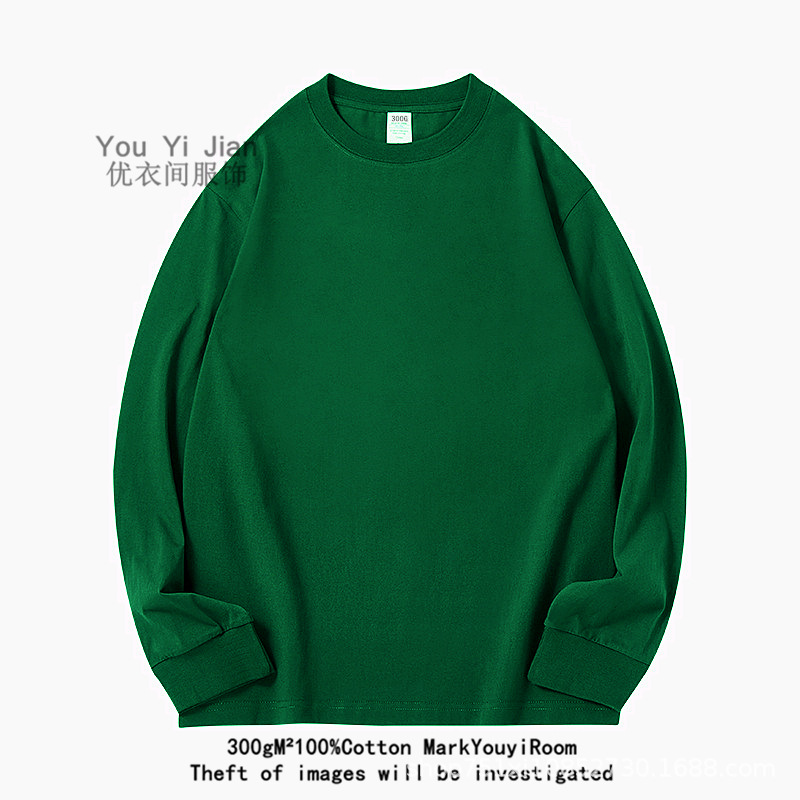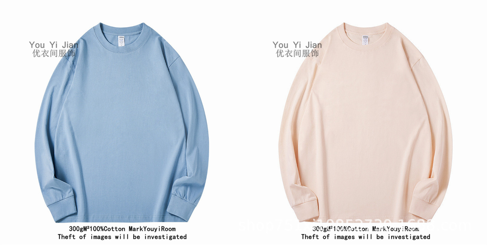 300g 헤비 솔리드 컬러 긴 소매 티셔츠 남성과 여성의 순수 코튼 봄과 가을 순수 화이트 블랙 느슨한 내복 남성스토어 가기