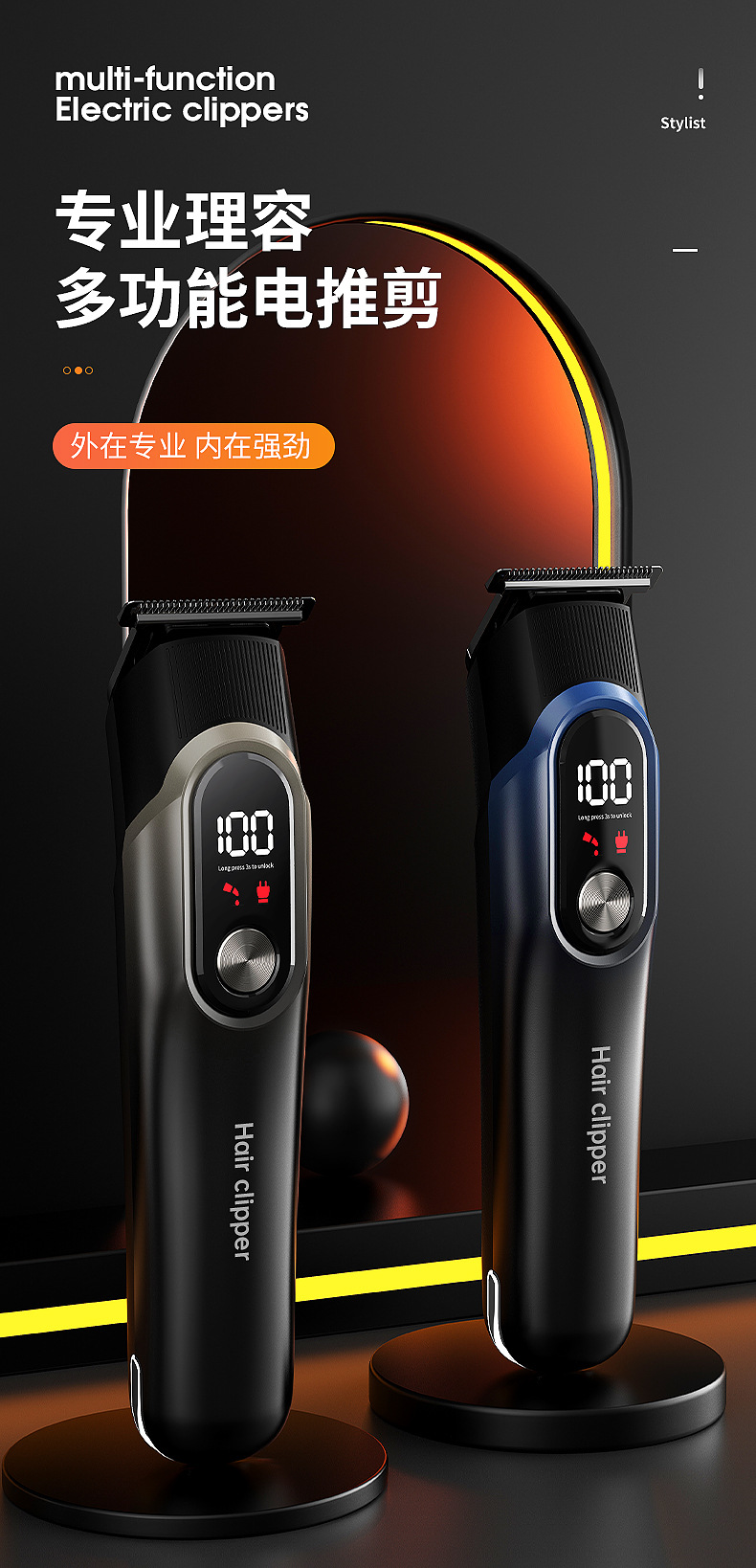 국경 간 새로운 헤어 클리퍼 5 대 1 세트 디지털 디스플레이 전기 클리퍼 면도 헤드 조정 가능한 조각 다기능 전기 클리퍼스토어 가기