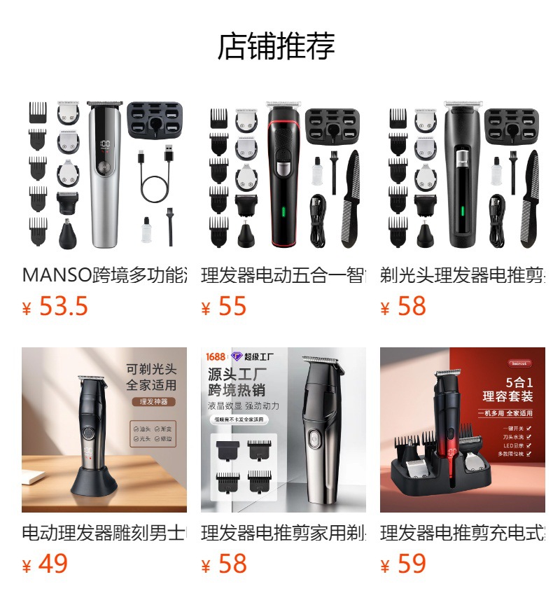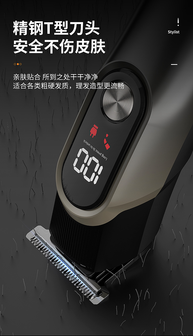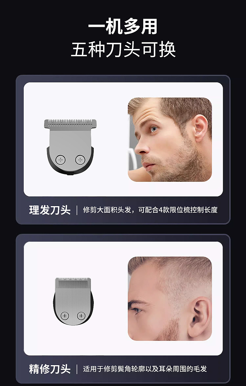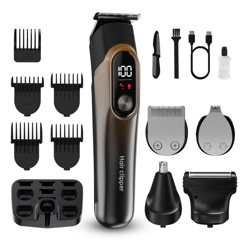 국경 간 새로운 헤어 클리퍼 5 대 1 세트 디지털 디스플레이 전기 클리퍼 면도 헤드 조정 가능한 조각 다기능 전기 클리퍼