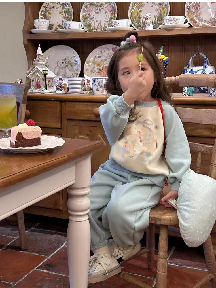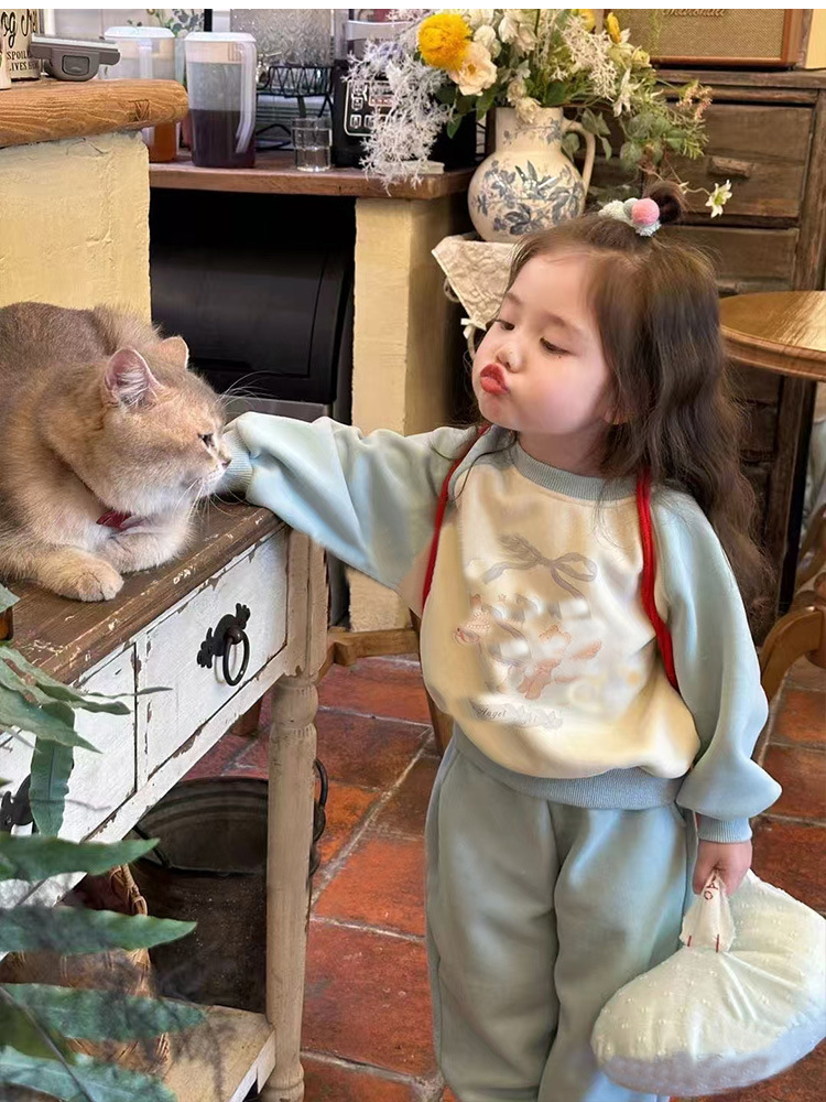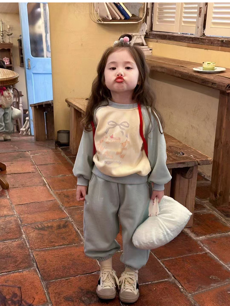 어린이 세트 가을 겨울 어린이 의류 만화 동물 서양식 아기 유치원 소녀 기모 풀오버 스웨트 팬츠