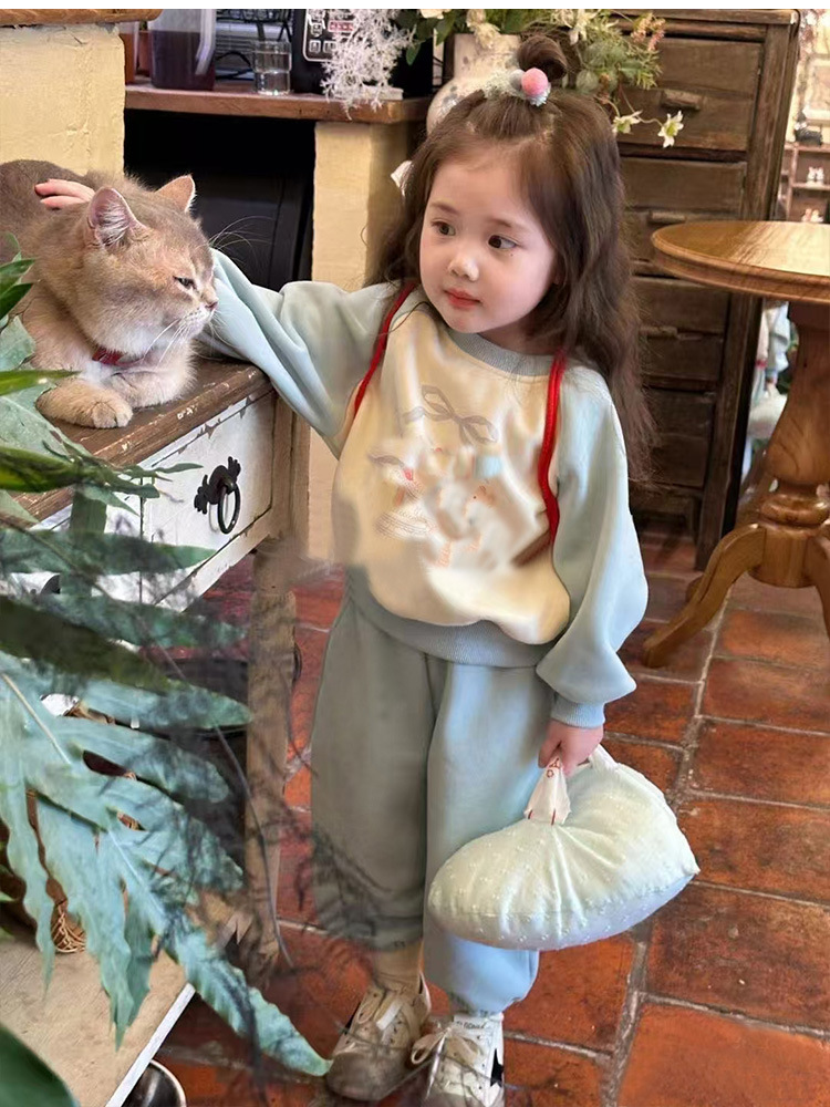 어린이 세트 가을 겨울 어린이 의류 만화 동물 서양식 아기 유치원 소녀 기모 풀오버 스웨트 팬츠스토어 가기