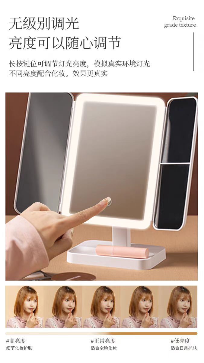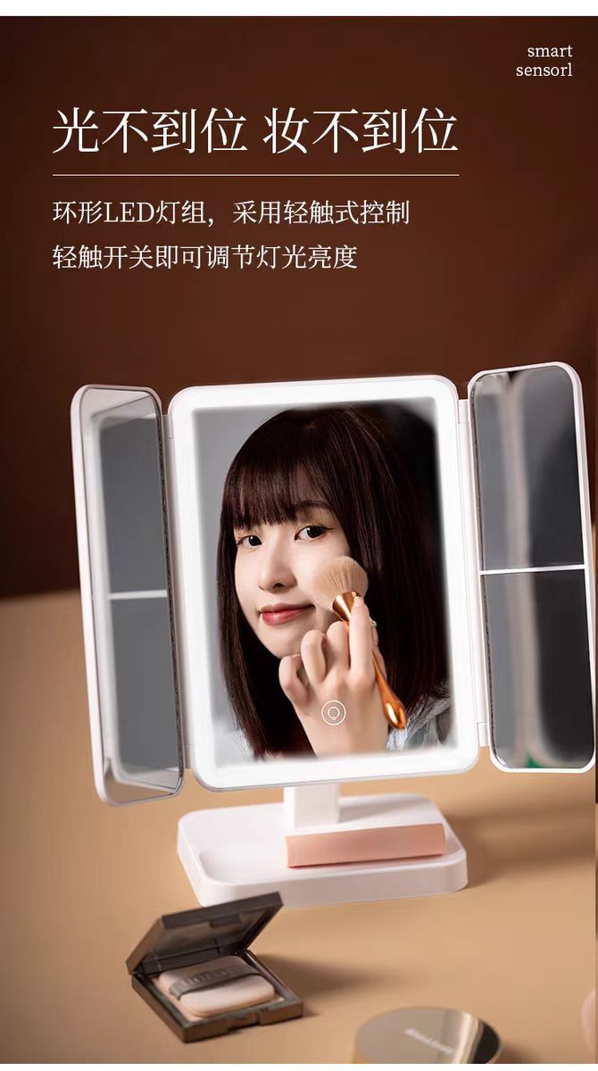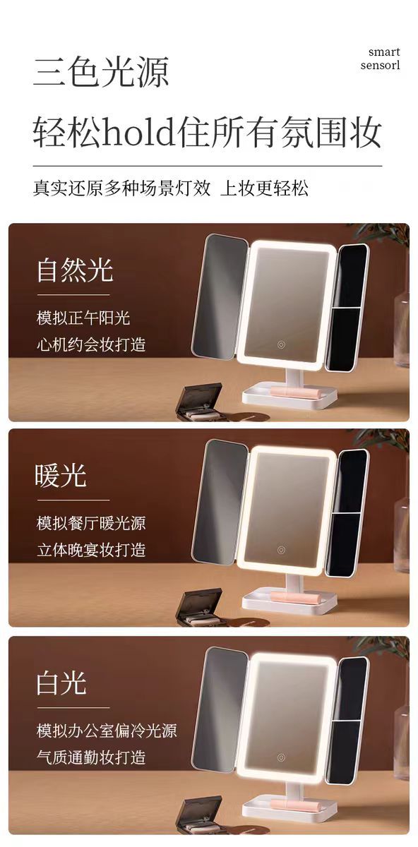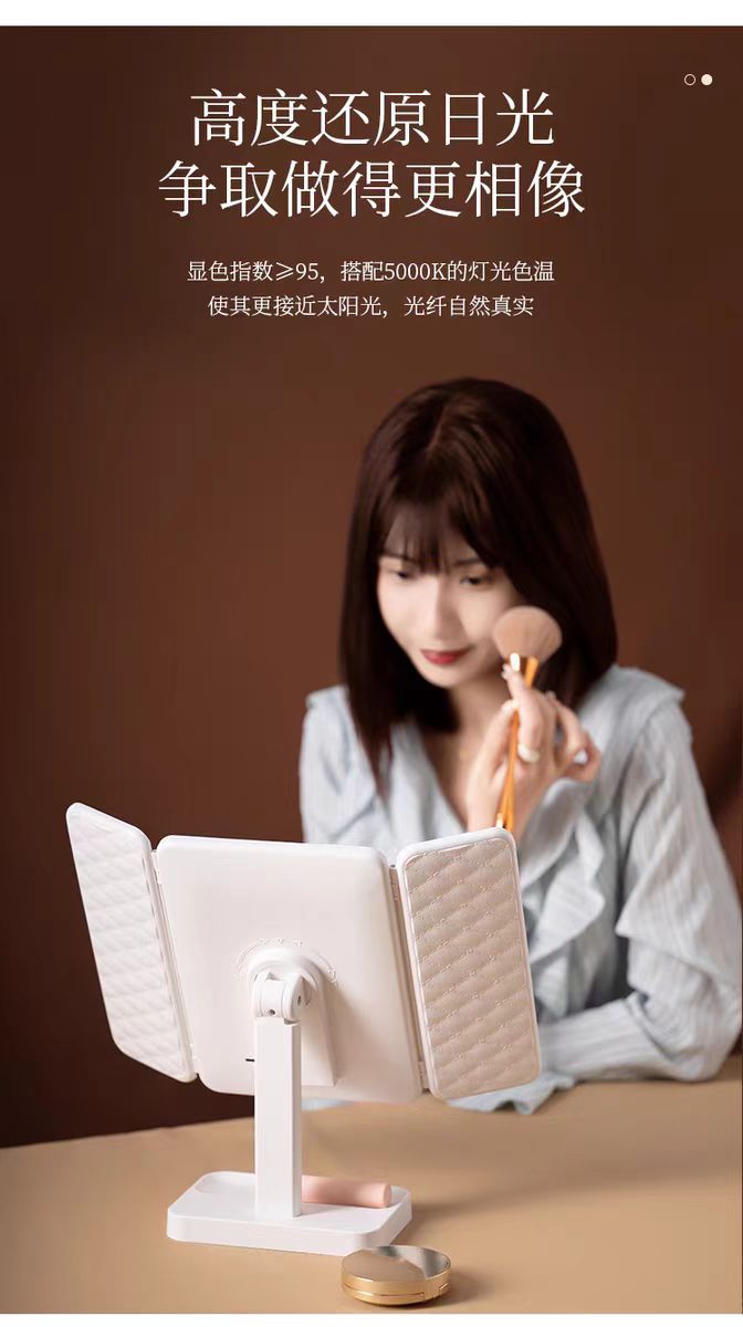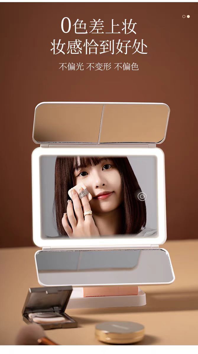 국경 데스크탑 led 다기능 쉘 접이식 거울 메이크업 거울 램프 데스크탑 세면대 거울 확대 거울스토어 가기